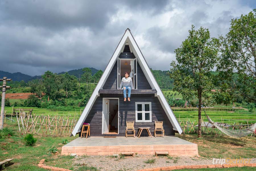 มุ่งหน้าสู่หมู่บ้านท่ามกลางทิวเขาและวิวนาขั้นบันได กันที่ บ้านพักแม่กลางหลวงวิว (Mae Klang Luang View) ที่พักดอยอินทนนท์ บรรยากาศหลักล้าน ห้องพักส่วนใหญ่ของที่นี่จะเป็นบ้านหลังใหญ่ มีพื้นที่กว้าขวาง เหมาะสำหรับการมาเข้าพักของชาวแก๊งค์และครอบครัวใหญ่ โดยรองรับการเข้าพักตั้งแต่ 4 คน ไปจนถึง 12 คนเลยล่ะ ซึ่งความพิเศษของบ้านพักที่นี่คือทุกหลังจะหันหน้าออกไปทางทุ่งนา เรียกได้ว่าพักหลังไหนก็ได้ใกล้ชิดธรรมชาติ และเห็นวิวสวยๆ เหมือนกันหมดแน่นอน