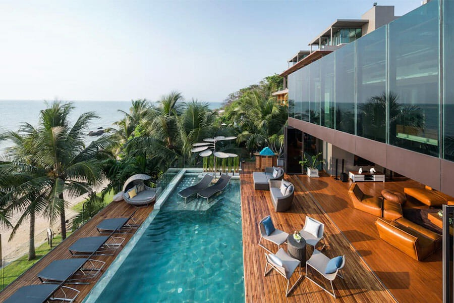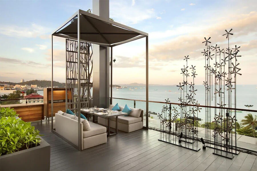 U Pattaya โรงแรมหรูสไตล์บูติกบรรยากาศดี ที่ตั้งอยู่ระหว่างหาดจอมเทียนและหาดบางเสร่ โรงแรมถูกออกแบบมาให้เข้ากับสภาพแวดล้อมท้องถิ่นในคอนเซ็ปต์ของหมู่บ้านชาวประมง ที่พักนักเดินเรือ ห้องพักของ U Pattaya มีทั้งแบบเป็นห้องพักและวิลล่า มีหาดส่วนตัวที่เดินไม่ไกลจากที่พัก และสระว่ายน้ำส่วนกลางแบบอินฟินิตี้พูลริมทะเลที่ทำให้เรามองเห็นทัศนียภาพสวยๆ ขณะที่กำลังว่ายน้ำอยู่ในสระ นอกจากนี้ยังมีบริการสปา ห้องออกกำลังกาย ห้องสมุด และยังสามารถเลือกเครื่องใช้ส่วนตัวได้เองอีกด้วย เหมาะกับการพักผ่อนมากๆ เลย