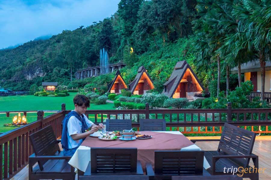 ชวนเพื่อนมานอนรีสอร์ท บรรยากาศดี ติดแม่น้ำ แถมยังมีรถไฟวิ่งผ่าน สวนไทรโยครีสอร์ท กาญจนบุรี ที่พักท่ามกลางธรรมชาติขุนเขา สายน้ำ สนามหญ้าและสวนดอกไม้ ขนาบข้างด้วยทางรถไฟบรรยากาศสุดอันซีน ในส่วนของห้องพักก็มีให้เลือกอยู่หลากหลายรูปแบบ ไม่ว่าจะเป็นห้องพักทรงสามเหลี่ยมสไตล์นอร์ดิก ห้องพักริมน้ำ บรรยากาศดีนั่งห้อยขาแช่เท้าได้แบบชิลล์ๆ มาพร้อมกับมุมถ่ายรูปที่ไม่ว่าจะมุมไหนก็ปังทุกมุม และที่สำคัญคือทางที่พักมีร้านนอาหารโลเคชั่นดีงามนั่งกินข้าวฟินๆ พร้อมดูวิวรถไฟแล่นผ่าน ได้มาเช็คอินที่นี่สักคืนสองคืนไม่มีผิดหวังแน่นอน