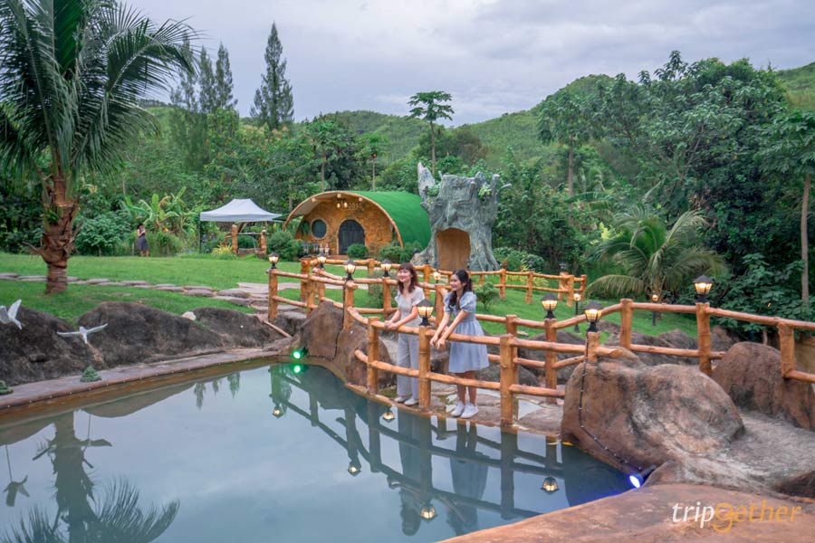 เอาใจสายกิจกรรม กับ ที่พักราชบุรี ที่ชื่อว่า เดอะ บันยัน ลีฟ รีสอร์ท (The Banyan Leaf Resort) ตั้งอยู่บนเนินหญ้าเขียวขจีพื้นที่กว่า 40 ไร่ พาดผ่านด้วยลำธารใสเย็น โดดเด่นด้วยบ้านพักหลากหลายที่มีสไตล์การออกแบบที่แปลกใหม่อย่างเช่น บ้านขนมชั้น บ้านแคปซูล บ้านแคนดี้ บ้านหุ่นยนต์ บอกเลยว่าเก๋ไก๋สวยงามทั้งภายในและภายนอก มาพร้อมสิ่งอำนวยความสะดวกครบครัน มีสระว่ายน้ำขนาดใหญ่ และกิจกรรมเพียบ! ไม่ว่าจะเป็นให้อาหารแกะ ให้อาหารปลา พายเรือ ขี่ม้า นั่งรถม้า ปั่นเรือหงส์ ปั่นจักรยาน ทำช็อกโกแลต สายคอนเท็นต์ห้ามพลาดเลยนะ! และสำหรับใครที่กำลังมองหาที่พักผ่อนที่มาพร้อมกิจกรรมสนุกๆ ครบจบในที่เดียว แนะนำให้เพิ่มเดอะ บันยัน ลีฟ รีสอร์ทไว้ในลิสต์ด้วยเลย