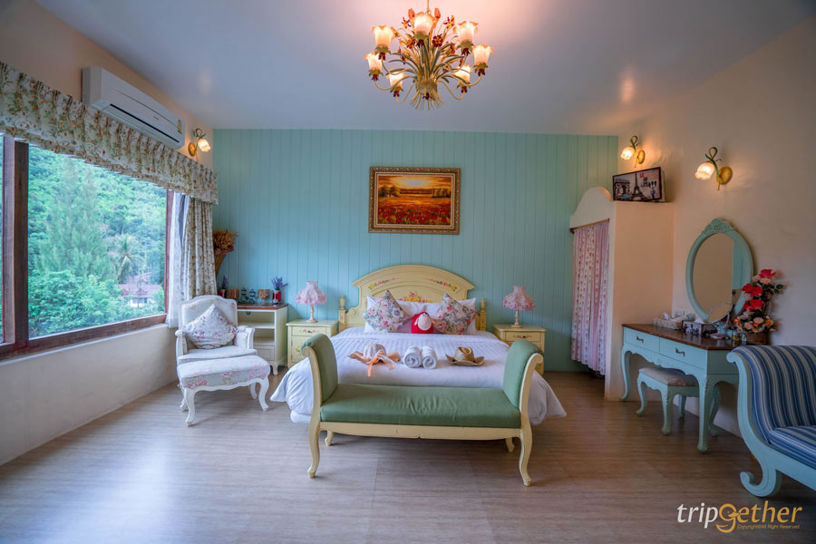 สวิสวัลเล่ย์ ฮิพ รีสอร์ท (Swiss Valley Hip Resort) ที่พักราชบุรีกับบ้านพัก Pool villa ที่ออกแบบหลากหลายสไตล์ให้เลือกพักจะมากับคู่รัก ครอบครัว เพื่อนสนิท ก็ตอบโจทย์ได้เป็นอย่างดีสุดๆ ที่นี่มีทั้งสไตล์ Tuscany, Greece, English, Spanish และ French เรียกได้ว่ายกยุโรปมาไว้ที่สวนผึ้งกันเลยทีเดียว ถูกใจสายติดแกลมแน่นอน ไม่ว่าจะจับกล้องมุมไหนก็ปังสุด แต่ละหลังดีไซน์มาในสไตล์คันทรี่สวยงามลงตัว มีสระส่วนตัวอยู่บริเวณหลังบ้าน รายล้อมไปด้วยธรรมชาติและขุนเขาสุดกรีน บรรยากาศดีมากๆ แถมบ้านพักยังมีชั้นดาดฟ้าสำหรับนั่งเล่นรับลมอีกด้วยนะ