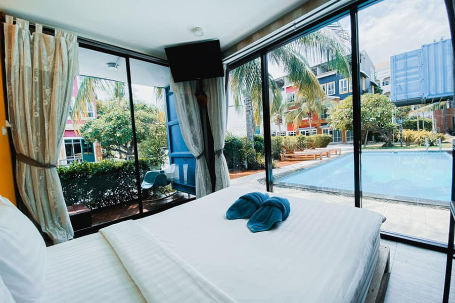 ฌาร์มารัน บูทิค ที่พักโซนชะอำใกล้ทะเลเพียงข้ามถนนจากหน้าที่พักเท้าก็สัมผัสทรายแล้ว สำหรับใครที่สงสัยชื่อที่พักนั้นคำว่า ฌาร์มารัน มาจากคำว่า Cha-am (ชะอำ) ซึ่งเป็นที่ตั้ง รวมกับคำว่า aran (อรัญ) นั่นเอง ส่วนของตัวห้องพักมาในสไตล์โมเดิร์นดีไซน์สะดุดตาด้วยตู้คอนเทนเนอร์ที่ถูกนำมาออกแบบให้เป็นห้องพักชิคๆ ห้องพักมีให้เลือกถึง 4 แบบคือห้อง Beach Box ที่มีทั้งแบบ Sea View และ Pool View ห้อง Sleeptigth Sea View ห้อง Family Suite และห้อง Star Bath Ocean View ทุกห้องมาพร้อมสิ่งอำนวยความสะดวกครบครัน ไม่เท่านั้นที่ ฌาร์มารัน บูทิค ยังมีสระว่ายน้ำให้ลงเล่นกันแบบเพลินๆ ด้วย ความพิเศษก็คือที่พักพร้อมต้อนรับสัตว์เลี้ยง ในทริปนี้คุณสามารถพาน้องหมาน้องแมวมาเที่ยวทะเลเปลี่ยนบรรยากาศได้ด้วย