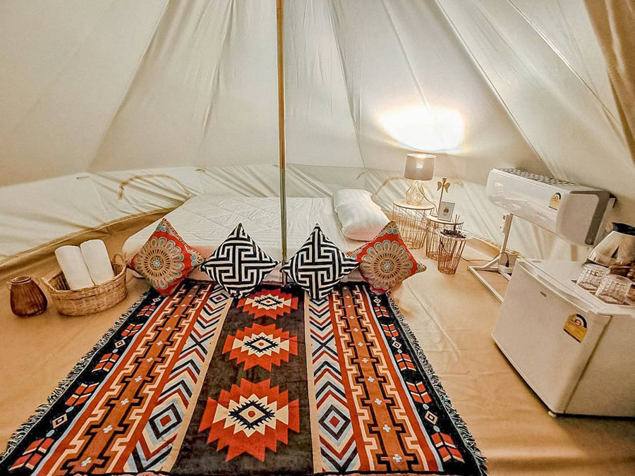 ฉวี แกลมปิ้ง แอนด์ คาเฟ่ อีกหนึ่งที่พักสไตล์แคมป์ปิ้งบรรยากาศดีท่ามกลางธรรมชาติและไอหมอก ควรค่าแก่การมาพักผ่อนสุดๆ ห้องพักจะเป็นกระโจมแบบมินิมอลให้ทุกคนเลือกพักกันได้ตามใจชอบเลย พร้อมสิ่งอำนวยความสะดวกในที่พักแบบครบครัน ตกเย็นทุกคนยังสามารถสั่งหมูกระทะมากินกันได้แบบจุใจ แถมที่พักยังอยู่ใกล้ๆ อ่างเก็บน้ำห้วยปรือและอ่างเก็บน้ำทรายทองด้วย ใครกำลังหาที่พักใกล้ๆ เพื่อไปเที่ยวกันต่อ พลาดที่นี่ไม่ได้เลย