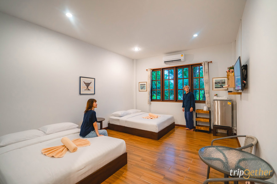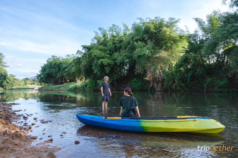 ที่พักริมน้ำ พร้อมแพ็คเกจ ใกล้กรุงเทพ ถัดมาเป็น ต้นฮักโฮมสเตย์ ตั้งอยู่ที่อำเภอแหลมสิงห์ ที่นี่เป็นโฮมสเตย์เล็กๆ ที่เน้นความเป็นส่วนตัว มาพร้อมอาหารทะเลแน่นๆ บุฟเฟ่ต์จัดเต็ม 3 มื้อ บอกเลยว่าสายกินต้องมาโดน พร้อมกิจกรรมต่างๆ ให้สนุกสนานกันทั้ง ล่องแพเปียก ชมเหยี่ยวแดง ที่สำคัญคือสามารถเล่นกิจกรรมได้ตั้งแต่หน้าที่พักเลย มีทั้งสไลเดอร์ พายเรือ มวยทะเล แผ่นวิ่งบนน้ำ