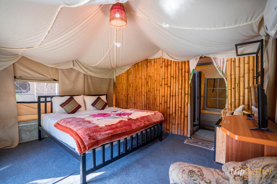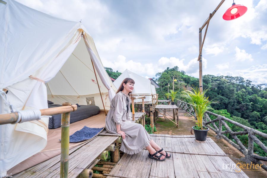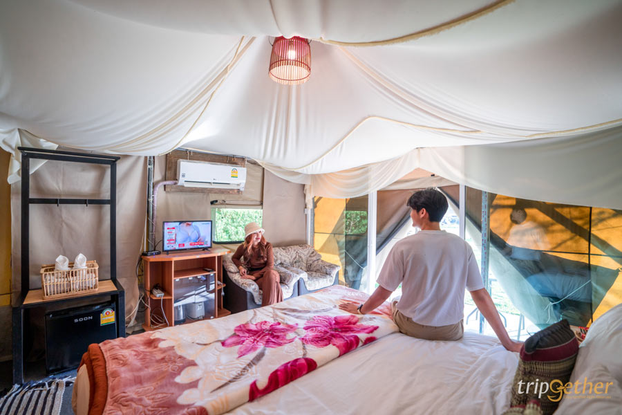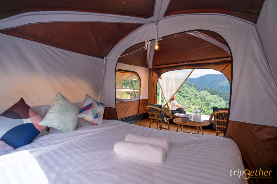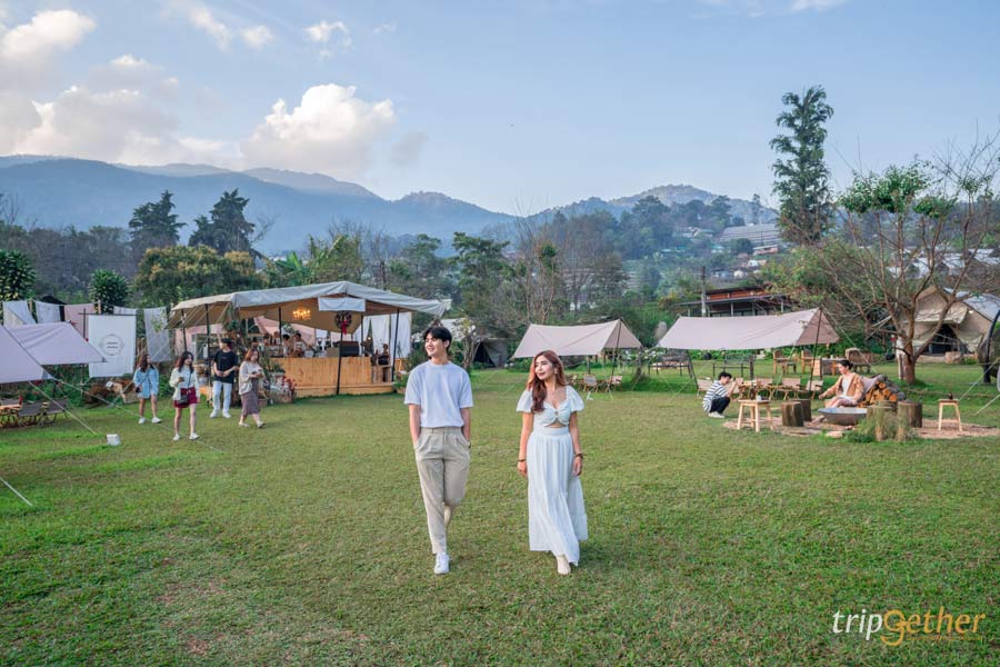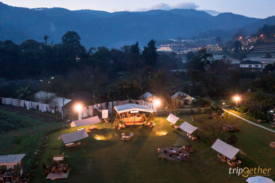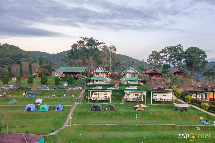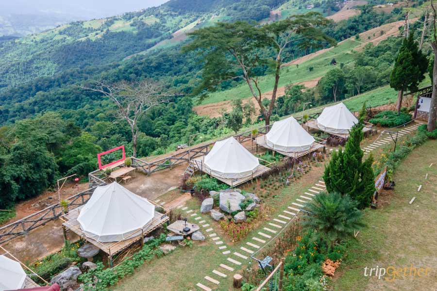 ถัดมาอีกหนึ่ง ที่พักวิวภูเขา ที่ผสมผสานความเป็นแคมป์ปิ้งกับรีสอร์ทไว้อย่างลงตัว เดอะการ์เดน เต็นท์แอนด์เฮาส์ ที่นี่มีห้องพัก 3 แบบด้วยกัน คือ บ้านไม้ บ้านปูน และเต็นท์ ทุกหลังมีห้องน้ำในตัว และสิ่งอำนวยความสะดวกครบ บรรยากาศเงียบสงบเหมาะกับการมาพักผ่อนมาก นอกจากนี้ยังมีคาเฟ่สไตล์แกลมปิ้งที่มีโซนที่นั่งอยู่ท่ามกลางสวนสวยๆ มีสวนดอกไม้ไฮเดรนเยียมาพร้อมมุมเก๋ๆ ให้ได้ถ่ายรูปกันเพลินๆ