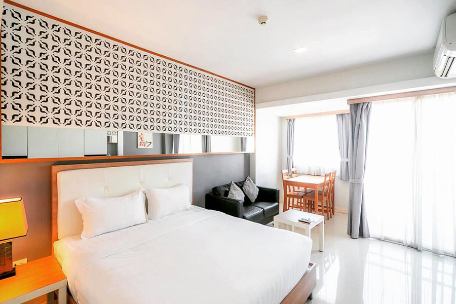 มาต่อกันที่ ราชา เรสซิเดนซ์ ที่พักตั้งอยู่ใจกลางเมืองศรีราชาเดินทางง่ายสะดวกสบายตั้งอยู่ใกล้กับเซนทรัล ท่าเรือเกาะสีชัง สวนสาธารณะ ร้านอาหาร และคาเฟ่ต่างๆ มากมาย ตกแต่งสไตล์มินิมอลสีขาวมองแล้วสบายตา ห้องพักราคาเริ่มต้นเพียงหลักร้อย สบายกระเป๋าสุดๆ มีขนาดใหญ่กว้างขวางพักได้อย่างสบายๆ อีกทั้งยังมีสิ่งอำนวยความสะดวกครบครันมีฟิตเนสให้บริการอีกด้วย เอาใจคนรักสุขภาพสุดๆ ไม่ว่าจะไปกับครอบครัว คู่รักหรือแก๊งค์เพื่อนก็เหมาะสุดๆ ไปเลย