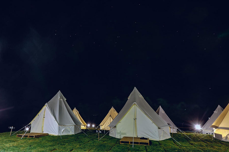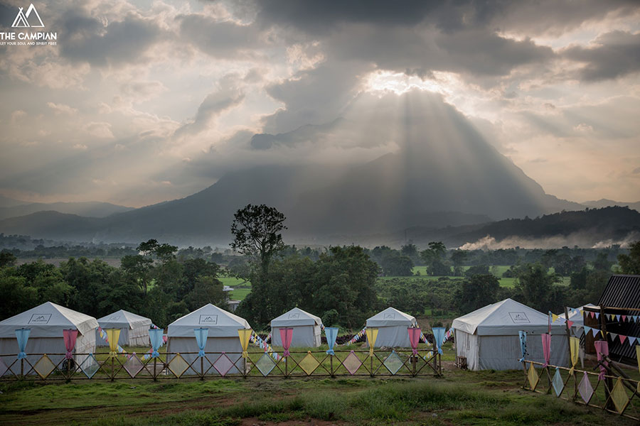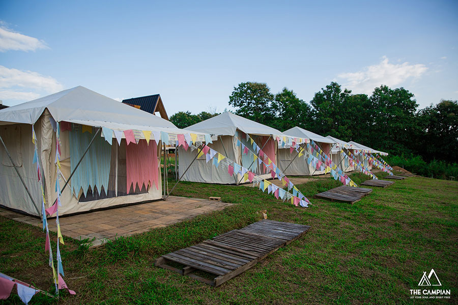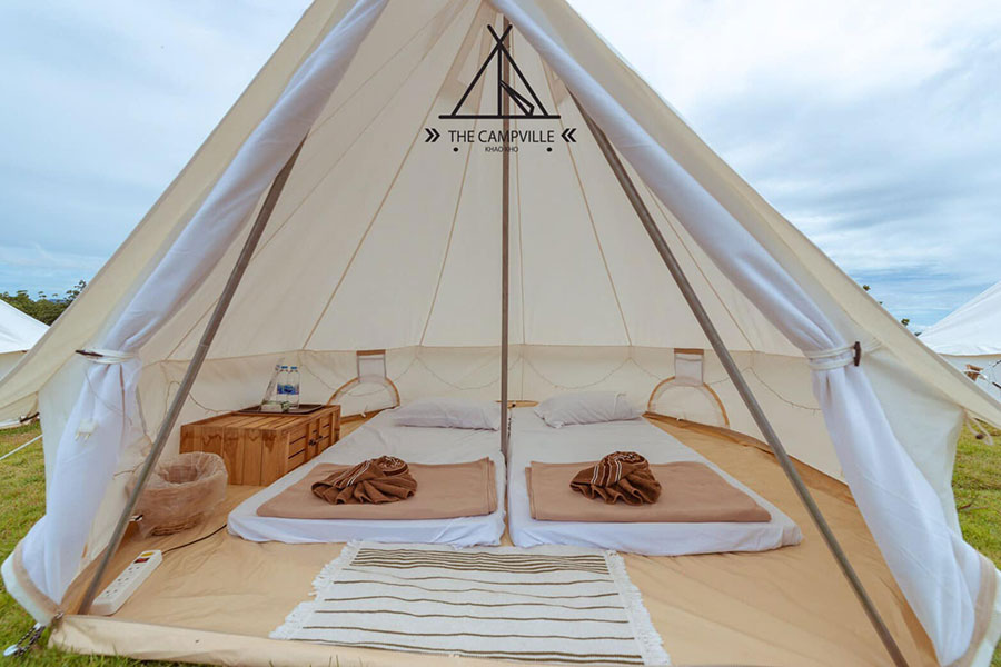 The Campville Khaokho ที่พักบรรยากาศดีบนขุนเขาที่สามารถมองเห็นธรรมชาติได้อย่างเต็มตา มาพร้อมเต็นท์ทั้งหมด 75 หลังให้เลือกนอนกันชิลล์ๆ ภายในเต็นท์มาพร้อมชุดเครื่องนอน ผ้าขนหนู แก้วน้ำ ปลั๊กไฟ พัดลม และอีกมากมายสะดวกสบายอย่างแน่นอน อีกทั้งยังมีลานสำหรับสายปาร์ตี้ให้ได้สังสรรค์กันแบบสบายๆ อีกด้วย รับรองได้เลยว่าต้องถูกใจกับดนตรีสดที่มาเสิร์ฟให้คุณถึงที่ทุกวันเสาร์และยังพิเศษสุดด้วยช่วงปีใหม่นี้จัดเต็มยาวๆ ไปเลย 5 วันเต็ม รับรองได้เลยว่านั่งจิบเครื่องดื่มไปฟังเพลงไปฟินอย่างแน่นอน