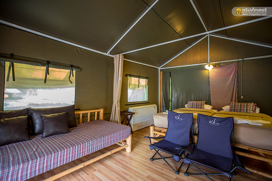 ต่อด้วย The Camp Chiangkhan เต็นท์สุดหรูที่มาพร้อมแอร์เอาใจคุณหนูที่อยากมานอนสัมผัสบรรยากาศธรรมชาติกันแบบฟินๆ ที่พักตั้งอยู่บนพื้นที่กว่า 10 ไร่ ติดริมแม่น้ำโขงมาพร้อมเต็นท์บ้านทั้งหมด 27 หลัง ภายในตกแต่งเรียบง่าย พร้อมสรรพด้วยสิ่งอำนวยความสะดวกครบครันทั้ง เครื่องปรับอากาศ โทรทัศน์ช่องเคเบิ้ล มินิบาร์ หากคนชอบถ่ายรูปต้องถูกใจกับพร็อพเก๋ๆ อย่างกระเป๋าผ้า หมวกผ้าที่จะมาเปลี่ยนลุคให้เข้ากับชาวแคมป์ปิ้งได้อย่างแน่นอน ซึ่งหากใครชอบความเป็นส่วนตัวละก็ต้องถูกใจกับห้องน้ำที่ตั้งอยู่ภายในเต็นท์ตอบโจทย์คนรักความสะอาดและชอบความสะดวกสบายได้เป็นอย่างดีเลยทีเดียว