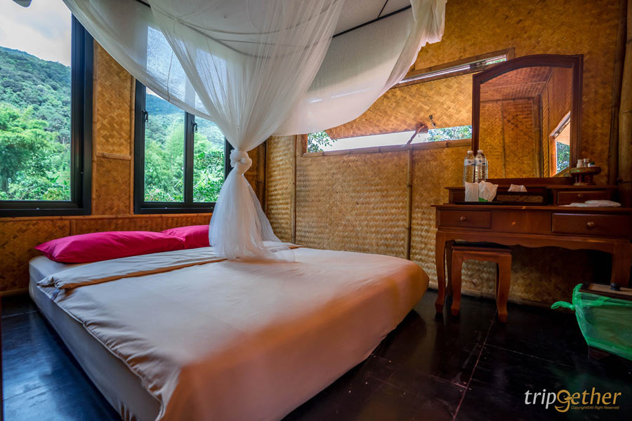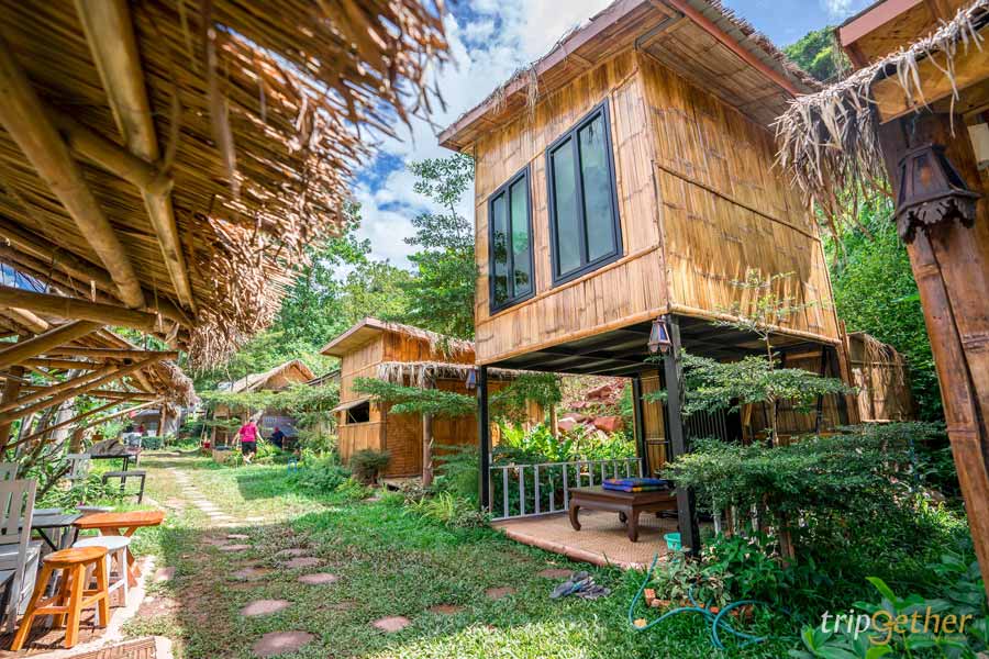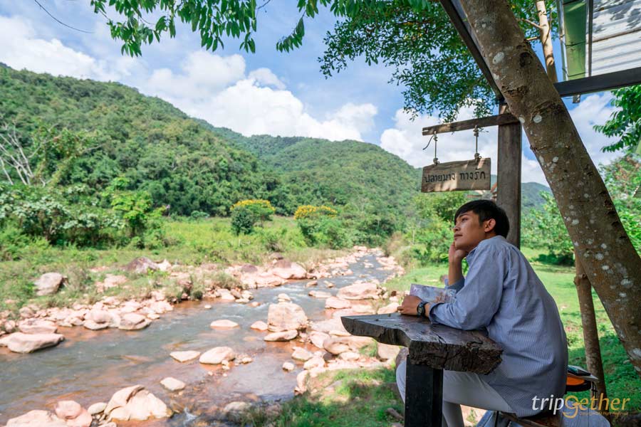 มาดู ที่พักหมู่บ้านสะปัน น่าน โลเคชั่นแรก กับที่พักเล็กๆ ริมน้ำมาง อย่าง ปลายมางทางรัก รีโซเทล (Plaimang Tangrak Resotel) ที่พักตั้งอยู่ท่ามกลางภูเขาและแม่น้ำ ใกล้ชิดธรรมชาติได้นอนฟังเสียงน้ำไหลตลอดทั้งคืน หน้าร้อนอากาศไม่ร้อน แถมหน้าหนาวก็อากาศดีสุดๆ ทำให้มีคนต่อคิวมาเข้าพักตลอดทั้งปี ที่นี่มีห้องพักทั้งโซนริมน้ำและในสวน หลากหลายสไตล์ ไม่ว่าจะมาเป็นคู่ แบบกลุ่มหรือครอบครัวก็มีห้องพักรองรับทุกรูปแบบเลยล่ะ ที่สำคัญคือบริเวณที่พักเมีสวนย่อมและลำธารเล็กๆ ให้เราได้เดินเล่น นั่งเล่น รับความสดชื่นจากธรรมชาติ บรรยากาศสงบเหมาะกับการมาพักผ่อน ชาร์จแบตและฮีลใจมาก