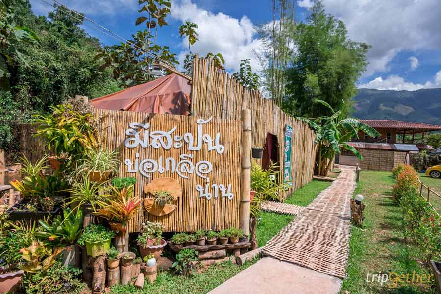 มาปิดท้ายกันที่ มีสะปัน บ่อเกลือ (Meesapan Boklua Nan) ที่พักริมน้ำ บรรยากาศสุดเลิศ! ท่ามกลางธรรมชาติ โดยที่นี่มีบ้านพักทั้งแบบกระโจม และบ้านพักแบบเป็นหลัง บรรยากาศห้องพักน่ารักอบอุ่นมาก แถมที่นี่ยังมีร้านอาหารให้บริการด้วยนะ และด้วยความที่ตัวที่พักมีสะปัน บ่อเกลือตั้งอยู่กลางหมู่บ้านสะปัน ทำให้สามารถเดินไปยังจุดเช็คอินต่างๆ ในหมู่บ้านได้แบบสบายๆ เลย ทั้งน้ำตกสะปัน สะพานแขวน นาขั้นบันได รับรองว่าได้ภาพสวยๆ คอนเท็นต์คูลๆ กลับไปลงโซเชียลแน่นอน
