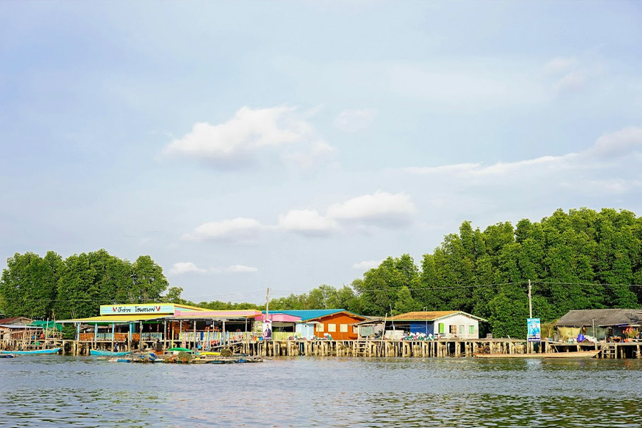 บางชันริเวอร์โฮมสเตย์ ที่พักสุดจะเรียบง่ายแต่เต็มไปด้วยเสน่ห์อันอบอุ่นของวิถีชีวิตชาวประมง ใครชอบความเงียบสงบและให้ฟีลเหมือนมานอนค้างบ้านญาติ ที่นี่ถือว่าตอบโจทย์เลย ส่วนแพ็คเกจของที่พักก็มีแบบ 2 วัน 1 คืน สนุกทั้งกิจกรรมกลางแจ้งและกลางน้ำ ไม่ว่าจะเป็นล่องแพเปียก เที่ยวทะเลแหวก ชมเหยี่ยว พายเรือคายัค และเต็มอิ่มกับอาหารทะเลสดๆ 3 มื้อ กุ้งตัวใหญ่ๆ หมึกตัวแน่นๆ จิ้มกับซีฟู้ดแซ่บๆ บอกเลยว่าฟินมาก ส่วนห้องพักก็จะเป็นสไตล์โฮมสเตย์ มีความเป็นบ้านๆ รองรับ 4 คนจนถึง 11 คน เป็นอีกที่พักหมู่บ้านไร้แผ่นดินที่น่ามาใช้ชีวิตสโลว์ไลฟ์มาก