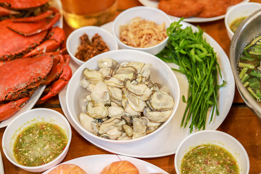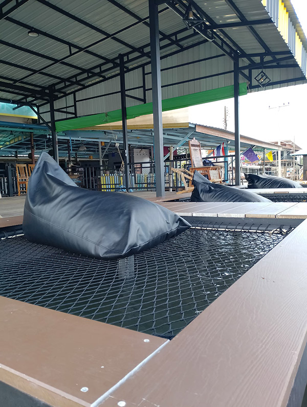 ชานทะเล โฮมสเตย์ ที่พักหมู่บ้านไร้แผ่นดิน คุณจะได้เต็มอิ่มกับบุฟเฟ่ต์ซีฟู้ดส์ 3 มื้อ โดยมื้อเที่ยงเป็นอาหารทะเลพื้นบ้าน ส่วนไฮไลท์คือมื้อเย็น มีปูเนื้อแน่นๆ จุกๆ เสิร์ฟแบบไม่พัก สายซีฟู้ดส์ต้องห้ามพลาด ยังไม่หมดเท่านี้ ที่นี่ยังมีกิจกรรมอีกมากมาย ทั้งล่องแพ ชมเหยี่ยวแดง ชมทะเลแหวก พายเรือ ตกปลา ร้องคาราโอเกะ แถมเครื่องเสียงจัดเต็ม สำหรับห้องพักจะตั้งอยู่บนทะเล เปิดประตูห้องออกมาชมวิวทะเลได้ทุกองศา ห้องพักพร้อมรองรับทุกกลุ่ม ตั้งแต่ 2 – 12 ท่าน มีระเบียงหน้าห้อง มีเปลตาข่ายให้ได้นอนรับลมสุดฟิน สิ่งอำนวยความสะดวกครบ ห้องน้ำในตัว มีแอร์ ทีวี ไวไฟ นอกจากนี้ยังมีร้านเสื้อของฝาก ชั้นดาดฟ้าชมวิว และร้านกาแฟสด เรียกได้ว่าเป็นหนึ่งในพักที่มาแล้วต้องรู้สึกอิ่มเอมและได้รับความประทับใจกลับไปเต็มร้อยแน่นอน