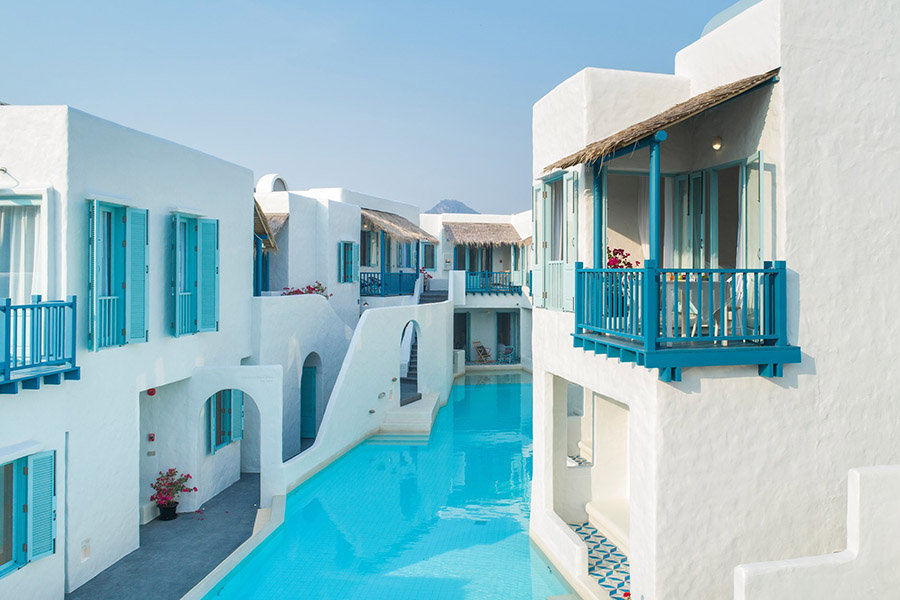 ไม่ต้องบินไปไกลถึงกรีซ ก็สัมผัสบรรยากาศเกาะซานโตรินี ได้ที่ Resort De Paskani ที่พักดีไซน์สวยอยู่ไม่ไกลจากเขาตะเกียบและเพียงไม่ถึงยี่สิบก้าวก็เดินถึงชายหาดหัวหินแล้ว ตัวที่พักเน้นใช้โทนสีขาว ฟ้า น้ำเงิน ซึ่งบอกเลยว่าทำให้รู้สึกถึงกลิ่นอายของเกาะซานโตรินีมากๆ ตรงกลางของที่พักมีสระว่ายน้ำทอดยาวผ่านหน้าห้องพักใครจองห้องแบบ Pool access ก็สามารถเปิดประตูแล้วลงสระได้เลยสะดวกสบายสุดๆ สำหรับคนที่ชอบถ่ายรูปที่ Resort De Paskani มีมุมให้ถ่ายรูปเพียบ คุมโทนสีไว้อย่างดีเพียงแค่คุณเลือกชุดมาให้พร้อมเท่านั้นเอง