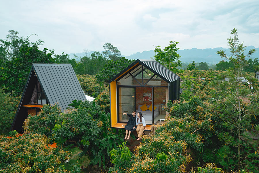 สวนฉันโฮมสเตย์เชียงดาว ที่พักเชียงดาวโอบล้อมอยู่ท่ามกลางความเขียวชอุ่มของสวนลำไย แถมมีวิวดอยหลวงเชียงดาวตั้งตระง่านโดดเด่น ส่วนห้องพักก็มีให้ทั้งหมด 4 แบบที่ต่างสไตล์กันและแต่ละหลังมีความเป็นส่วนตัว เริ่มจากห้อง Small Box ที่เป็นบ้านพัก 2 ชั้น มาพร้อมกับชานระเบียงเล็กๆ ให้ได้นั่งห้อยขาชิลล์ๆ ชมวิวธรรมชาติเต็มๆ ต่อมาคือ ห้องพักสามเหลี่ยม เหมาะกับกลุ่มเพื่อนหรือครอบครัวมากเพราะมีพื้นที่ให้ทำกิจกรรมหน้าบ้าน ถัดมาเป็นบ้านหลังใหญ่นอนรวม สำหรับ 10 คน ถ้าใครมากันเยอะแล้วอยากจัดปาร์ตี้ต้องมาที่ห้องนี้เลย และสุดท้ายเป็นบ้านเดี่ยวสไตล์ลอฟ์ทกับบรรยากาศความร่มรื่นของต้นไม้ ส่วนใครชอบนอนแคมป์ปิ้งชิลล์ๆ ทางที่พักก็มีเต็นท์ด้วยเช่นกัน นอกจากนี้มื้อเย็นยังสามารถสั่งหมูกระทะร้อนๆ นั่งกินไปชมวิวดอยหลวงไป บอกเลยว่าฟินมากๆ