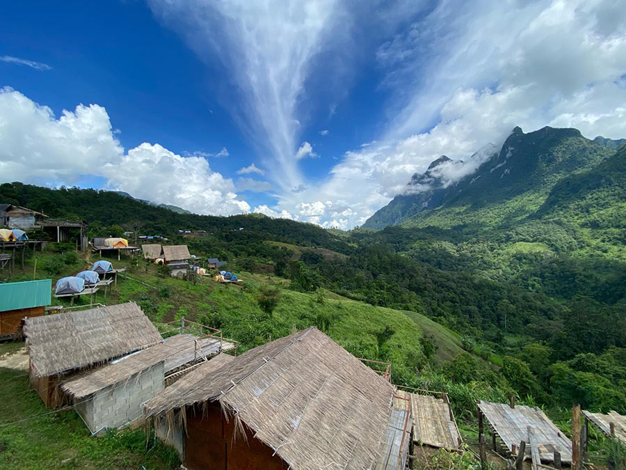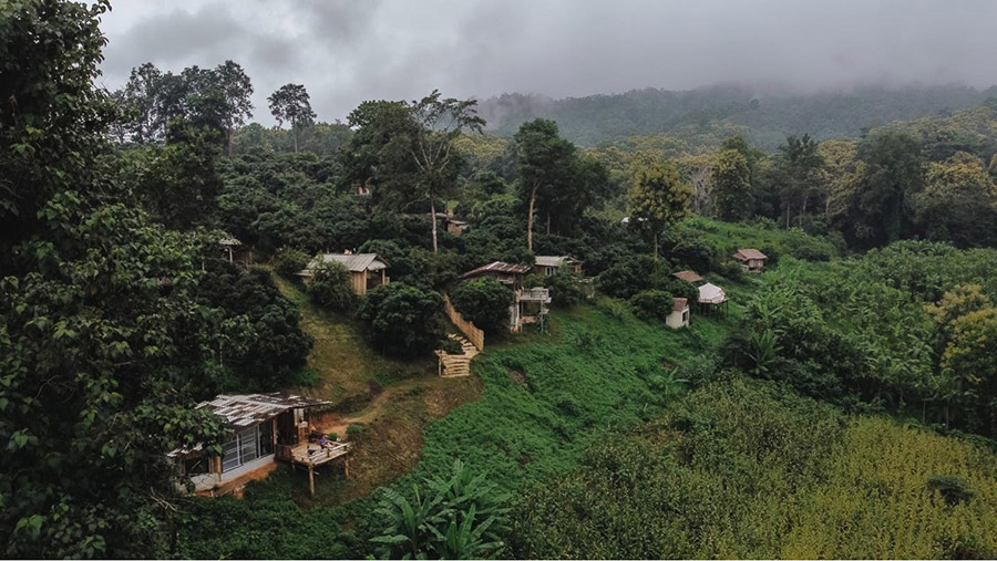 ป่า โป่ง ดอย ที่พักบรรยากาศชิลล์ๆ บนเชียงดาวที่มีขุนเขา ป่าไม้ และสายหมอกอยู่เป็นเพื่อน บรรยากาศที่พักมีกลิ่นอายความเป็นบ้านๆ ที่ความเรียบง่ายและเงียบสงบ ในส่วนของห้องพักก็จะมีบ้านพักและเต็นท์ โดยบ้านพักแบ่งออกเป็น 3 แบบ ได้แก้ บ้านหลังเล็กสำหรับ 2 คน บ้านหลังใหญ่สำหรับ 6 – 8 คน และบ้านกระจกสำหรับ 2 – 4 คน บ้านพักแต่ละหลังจะแยกออกจากกัน มีความเป็นส่วนตัว พร้อมกับมีระเบียงหน้าบ้านที่มองออกไปเห็นดอยหลวงเชียงดาวแบบเต็มๆ ตา สำหรับใครที่อยากนอนเต็นท์ก็มีเต็นท์ให้นอนท้าหนาวด้วย แต่ถ้าใครพกเต็นท์มาเองก็มีลานกางเต็นท์ให้บริการด้วย นอกจากนี้ยังมีกิจกรรมให้ทำมากมาย อย่างแช่ออนเซ็น นวดตัว เดินเส้นทางศึกษาธรรมชาติ ซึ่งกิจกรรมเหล่านี้เป็นของทางที่พักร่วมกับวิสาหกิจชุมชน ดังนั้นรายได้ต่างๆ จะอยู่ที่คนในหมู่บ้านเอง เรียกได้ว่าเป็นการมาเที่ยวแบบยังยืนจริงๆ