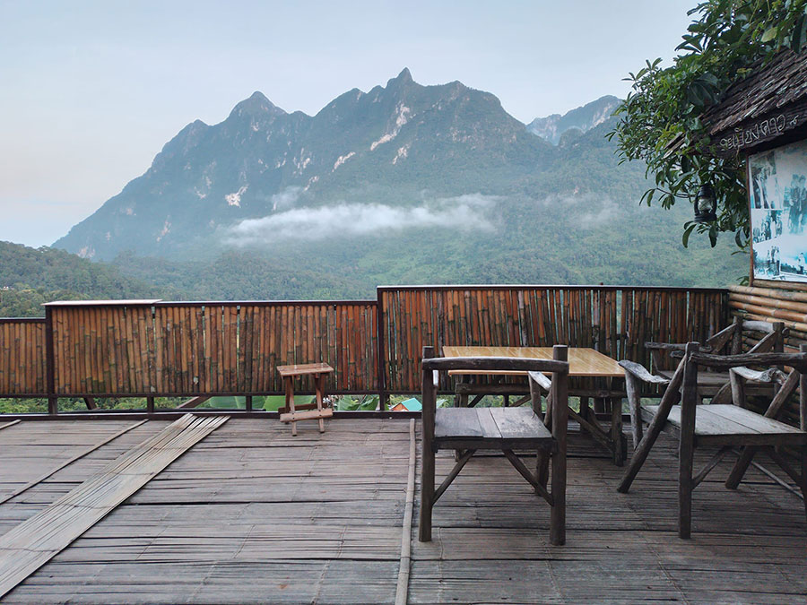บ้านระเบียงดาว ที่พักเชียงดาวที่เห็นวิวดอยหลวงแบบใกล้ชิด ตัวที่พักเป็นบ้านไม้ไผ่แบบชาวบ้านๆ ทำให้บรรยากาศมีความเป็นกันเองและอบอุ่น รวมถึงมีระเบียงไม้ไผ่กว้างที่สามารถนั่งทำกิจกรรมต่างๆ ไม่ว่าจะนั่งชิลล์เสพธรรมชาติ นั่งล้อมวงคุยเล่น สำหรับห้องพักจะเป็นบ้านที่ดูเรียบง่าย มีระเบียงและห้องน้ำส่วนตัว ส่วนใครอยากนอนเต็นท์ใกล้ชิดธรรมชาติก็สามารถนำเต็นท์มากางได้ อีกทั้งบริเวณที่พักยังมีคาเฟ่ บอกเลยว่าตื่นเช้ามามองสายหมอก ดื่มด่ำความสวยงามของดอยหลวง และจิบกาแฟร้อนๆ สักแก้ว ดูเรียบง่ายแต่แค่นี้ก็สุขใจแล้ว