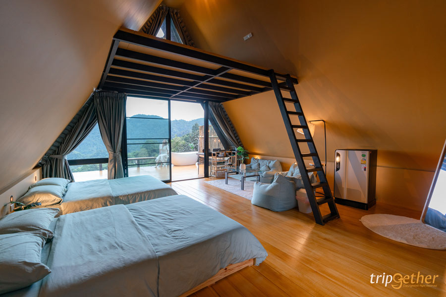 นอนดูทะเลหมอกพร้อมวิวเขานางนอนกันบนผาฮี้กันต่อ กับ ที่พักเชียงราย วิวดี อิงหมอก by บ้านสวนผาฮี้ (Ingmork By Bansuanphahee) บ้านพักทรงเอเฟรมสุดเก๋ ตั้งอยู่บนเนินสูง ซึ่งมีเพียง 4 หลังเท่านั้น แถมแต่ละหลังมองเห็นวิวขุนเขาและทะเลหมอกได้แบบเต็มๆ จากในห้องเลยล่ะ สำหรับไฮไลท์อีกอย่างหนึ่งของที่นี่ก็คืออ่างอาบน้ำเอาท์ดอร์ ให้ได้แช่น้ำอุ่นๆ สุดจะฟิน หรือจะใช้เป็นมุมถ่ายรูปสุดปังก็ดีไม่น้อย ใครอยากหนีมานอนกลางป่า ดูวิวธรรมชาติ 180 องศาแนะนำให้จดอิงหมอก by บ้านสวนผาฮี้ลงลิสต์ไว้เลย
