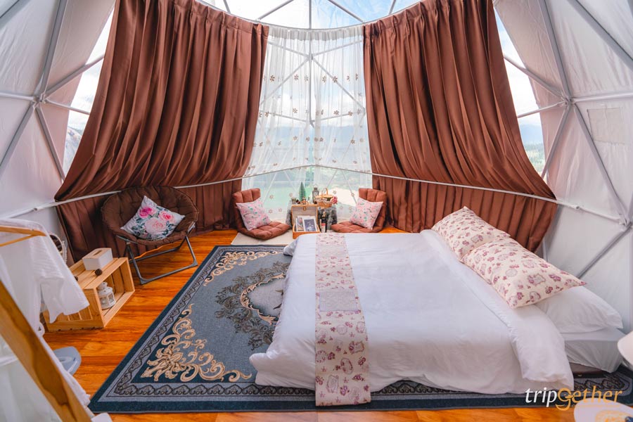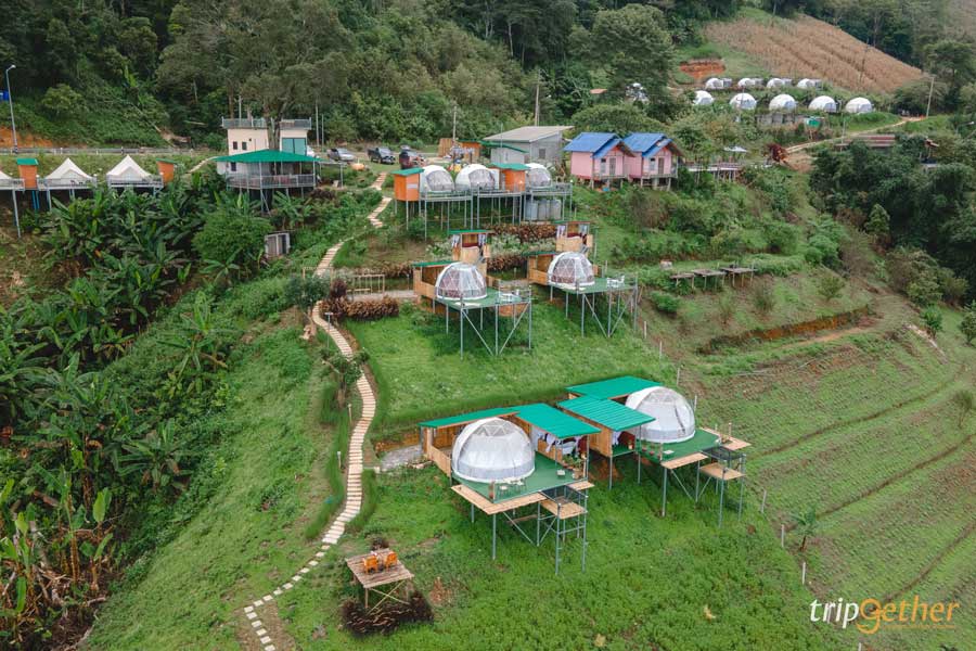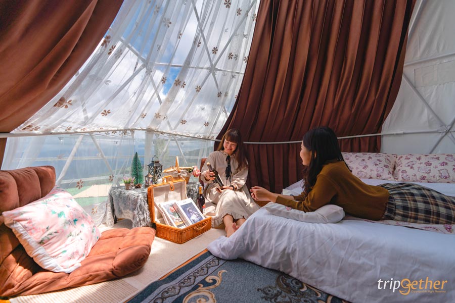 พามาส่งท้ายคสามสุขสุดกรีนกันที่ ร้อยรักภูชี้ฟ้า (Phuchifa Sky Camp) อีกหนึ่ง ที่พักเชียงราย ที่สายนอนแคมป์ปิ้งน่าจดลิสต์ไว้สุดๆ มีห้องพักแบบเต็นท์โดมให้เลือกพัก 3 แบบ 3 สไตล์ ภายในตกแต่งอย่างสวยงาม ฟีลเหมือนอยู่ต่างประเทศ บอกเลยว่ามุมถ่ายรูปสวยๆ เพียบ! แถมสามรถชมวิวพระอาทิตย์ตกได้ที่หน้าเต็นท์ สวยอลังการมาก แถมยังมีหมูกระทะ และอาหารเครื่องดื่มอื่นๆ ให้บริการด้วยนะ