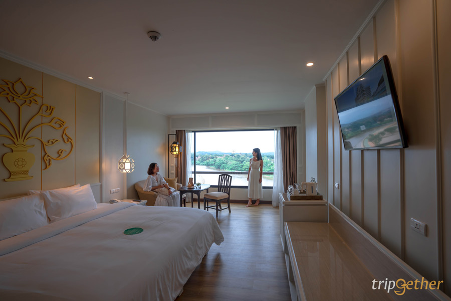 เดอะ ริเวอร์รี บาย กะตะธานี (The Riverie by Katathani) ที่พักเชียงราย สุดหรู ระดับ 5 ดาว ริมแม่น้ำกก บรรยากาศชิลล์มาก สามารถมองเห็นได้จากห้องพักวิวแม่น้ำของโรงแรมเลยทีเดียว ตัวที่พักมีการตกแต่งสไตล์โมเดิร์นผสมผสานกับกลิ่นอายของความเป็นล้านนา มีห้องพักให้เลือกถึง 8 แบบ สิ่งอำนวยความสะดวกอย่างครบครัน แถมรองรับทุกการเข้าพักไม่ว่าจะมาเป็นคู่หรือครอบครัวใหญ่ พิกัดที่พักตั้งอยู่ใกล้สถานที่ท่องเที่ยวและวัดสำคัญของเชียงรายอยู่หลายแห่งเลยล่ะ ไม่ว่าจะเป็น วัดพระแก้ว วัดพระสิงห์ วัดห้วยปลากั้ง ใช้เวลาเดินทางจากสนามบินเชียงรายเพียง 20 นาที