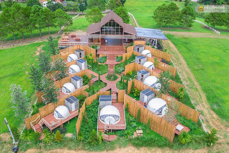 ที่พักแนวแคมป์ปิ้ง ที่จะพาคุณไปสัมผัสกับธรรมชาติอย่างใกล้ชิด เสมือนว่ามานอนเต้นท์กลางป่าแต่ว่ามีอุปกรณ์และบริการต่างๆให้อย่างครบคัน ตัวสถาปัตยกรรมถูกออกแบบมาในแนวธรรมชาติที่งอกออกมาจากดินปกคลุมเป็นแนวหลังคา เรียงรายอย่างสวยงาม วัสดุที่ใช้เน้นธรรมชาติแทบจะ 100% โดยที่นี้ใช้คอนเซ็ปต์ ECO รักษ์โลก เสมือนเป็นหนึ่งเดียวกับธรรมชาติ โดยมีห้องพักทั้งหมด 3 แบบ คือ Yellow House สำหรับ5-8 ท่าน, Single Room สำหรับ 2 ท่าน, High Camp สำหรับ 2 ท่าน เลือกได้ตามสไตล์และความชอบได้เลย นอกจากนี้ยังมีกิจกรรมต่างๆภายในที่พัก เช่น ปันจักรยาน, เดิมชมฟาร์ม, นั่งชมพระอาทิตย์ขึ้น ถือเป็นที่พักที่สวยเน้นธรรมชาติ ได้มาพักผ่อนแบบผ่อนคลายจริงๆ สำหรับ เขาค้อ บูติคแคมป์