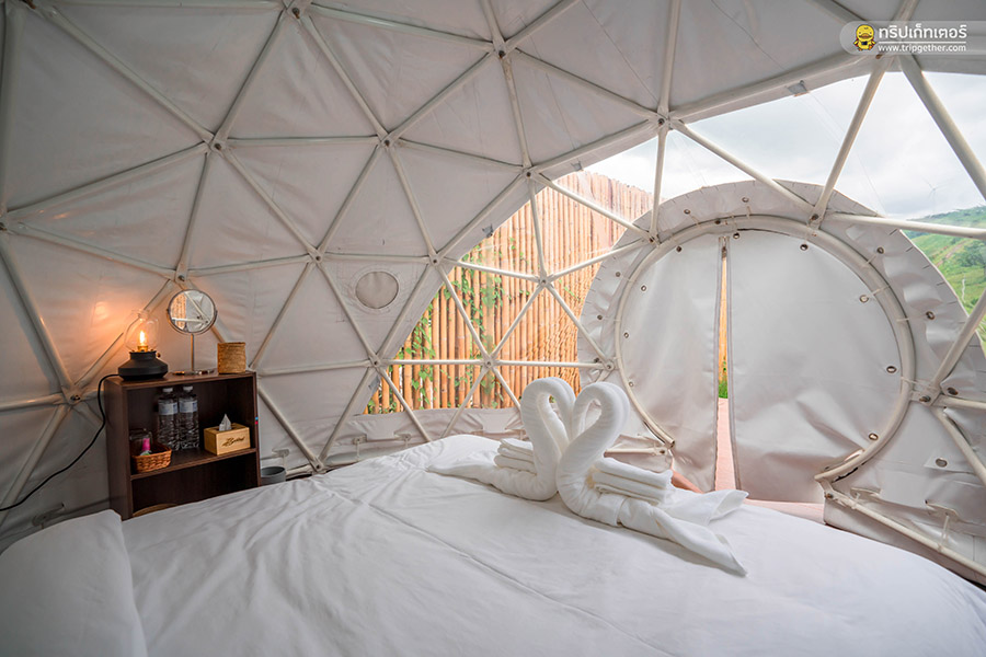 Price: ราคาเริ่มต้น Small Bell 1500 บาท/คืน Mini Dome 2,500 บาท/คืน Mini Dome View Point 2,800 บาท/คืน Grand Dome, Big Bell 3,200 บาท/คืน Family Tent 3,600 บาท/คืน (ราคาห้องพักอาจมีการเปลี่ยนแปลงกรุณาโทรสอบถาอีกครั้ง)