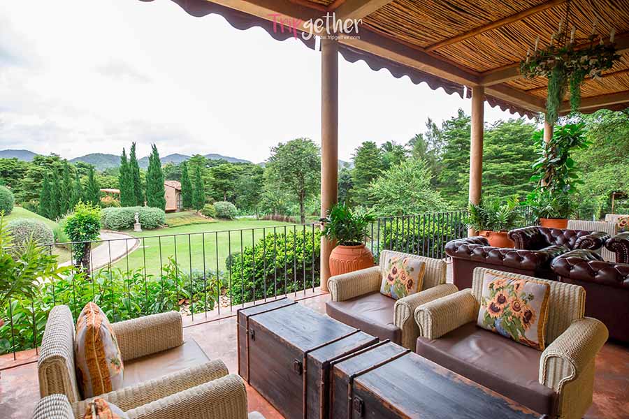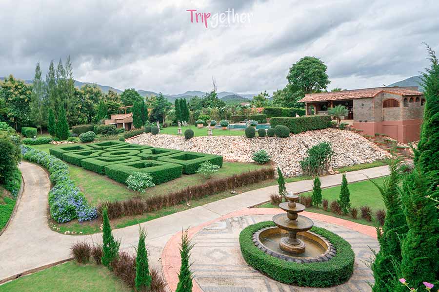 ลาคอสทาน่า ถึงที่นี่อาจจะไม่ได้มีดอกไม้เยอะมาก แต่ขอบอกว่าแต่งสวนได้อย่างสุดครีเอท เน้นการดีไซน์ต้นไม้สีเขียว จัดระเบียบและคอมโพสต์ได้อย่างดีเยี่ยม เข้ากับตัวที่พักที่ได้แรงบันดาลใจมาจากเมืองทัสคานา ประเทศอิตาลี ซึ่งให้ฟิลลิ่งที่เหมือนมากเลยทีเดียว ในส่วนของห้องพักจะเป็นแบบวิลล่าหลังสีส้ม หลังเล็กหลังใหญ่ ตัดกับสีเขียวกรีนๆ ได้อย่างสะดุดตา แบบว่าไม่ต้องพึ่งแอพแต่งสีเพิ่มเติมเลย