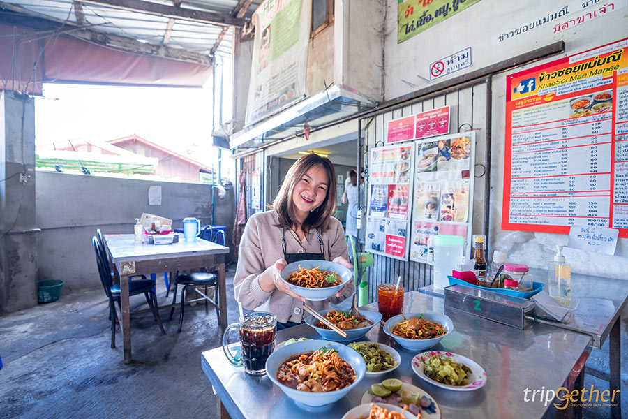 ข้าวซอยแม่มณี ร้านโลคอลเล็กๆ แต่ความอร่อยสุดปังเพราะได้รับรางวัลการรันตีจาก บิบ กูร์มองด์ ร้านอาหารอร่อยในราคาย่อมเยา จากมิชลินไกด์ ที่สำคัญร้านเปิดมายาวนานกว่า 40 ปี สำหรับเมนูข้าวซอยของทางร้านมีเนื้อสัตว์ให้เลือกมากมายทั้งน่องไก่ อกไก่ ปลา ปูอัด หมูยอ ซี่โครงหมูตุ๋น ลูกชิ้นหมู ไส้หมู หูหมู กระเพาะหมู เนื้อ ไส้เนื้อ และลูกชิ้นเนื้อ ส่วนของเส้นมีทั้ง ข้าวซอยแบบออริจินัล กรอบซอย เตี๋ยวซอย วุ้นซอย และมาม่าซอย เลือกเส้นและเนื้อสัตว์ได้แล้วกินกับน้ำซุปข้าวซอยเครื่องแกงเข้มข้นที่เคี่ยวด้วยเตาถ่านอร่อยจนขอบอกต่อจริงๆ
