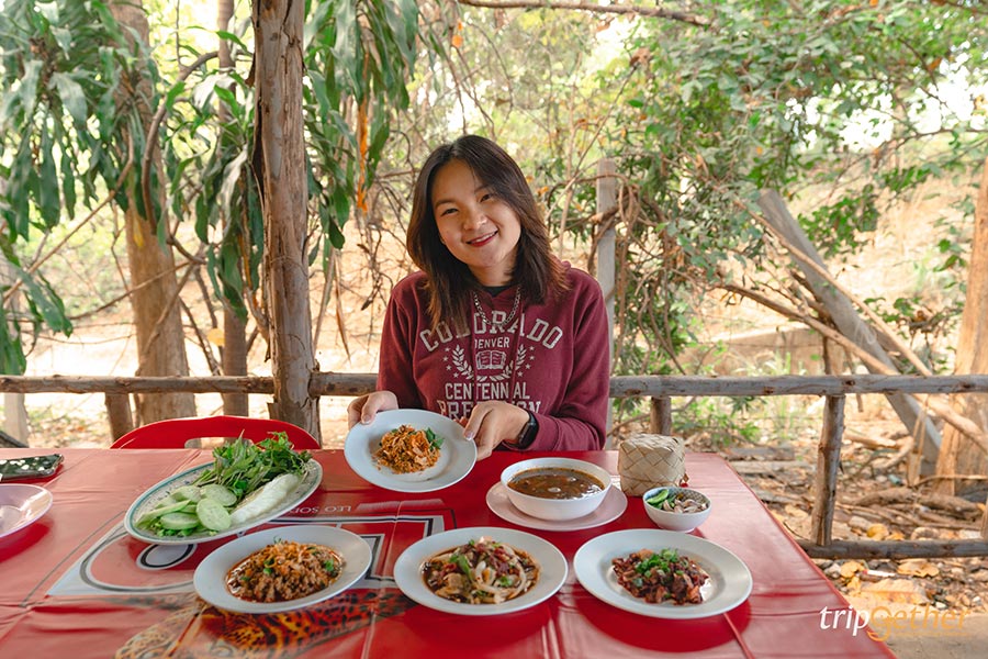 ลาบริมคลอง ร้านลับที่คนในพื้นที่แนะนำมาว่าต้องไปลองสักครั้ง ตัวร้านเป็นร้านเล็กๆ บรรยากาศบ้านๆ แต่บรรยากาศแบบนี้แหละต้องอร่อยแน่ๆ เมนูมีประมาณ 10 เมนู ส่วนใหญ่จะเป็นอาหารเหนือ ที่เด็ดมาแล้วต้องสั่งก็คือ ลาบปลา ลาบเนื้อ ลาบหมู ส้าเนื้อ แกงอ่อมเนื้อ ทุกจานรสจัดจ้าน เผ็ดครบเครื่อง และไฮไลท์ที่ทุกโต๊ะต้องมีก็คือปลาทอด หนังกรอบ เนื้อขาวหวานฉ่ำ ยิ่งราดกับน้ำจิ้มสามรส บอกเลยว่าอร่อยฟินมาก