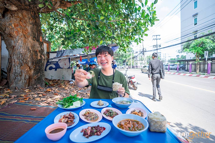 ถ้าพูดถึงร้านเด็ด ขวัญใจเด็ก มช. ก็ต้องร้าน ลาบลุงน้อย By ตี๋หลังมอ เรียกได้ว่าอยู่เป็นตำนานคู่กับมช. มาอย่างยาวนาน ใครที่เรียนที่นี่จะต้องเคยมากินสักครั้ง ด้วยลาบที่รสชาติจัดจ้าน ถึงเครื่องร้อนแรง หอมกลิ่นมะแขว่น และมีให้เลือกหลากหลาย ทั้งลาบหมูดิบ ลายหมูสุก ลาบควายดิบ รวมถึงเมนูส้มตำต่างๆ สั่งมากินคู่กับลาบลงตัวสุดๆ นอกจากนี้ยังมีเมนูต้มแซ่บ เปรี้ยว เค็ม เผ็ดลงตัว กินตอนร้อนๆ อร่อยมาก และที่ห้ามพลาดคือเมนูกินเล่นอย่าง ไส้ย่าง ไข่ย่าง หมูย่าง ราคาเพียงไม้ละ 5 บาท แต่รสชาติต้องยกนิ้วให้เลย