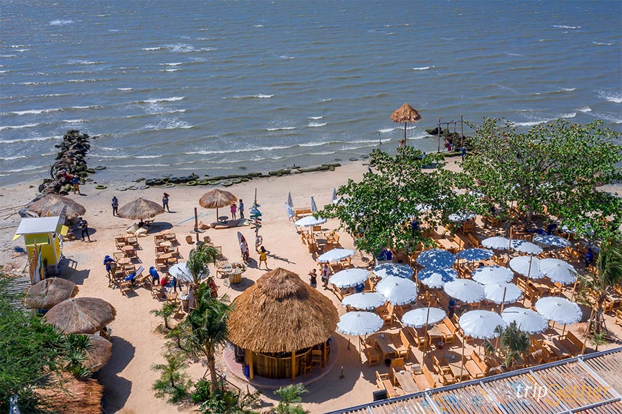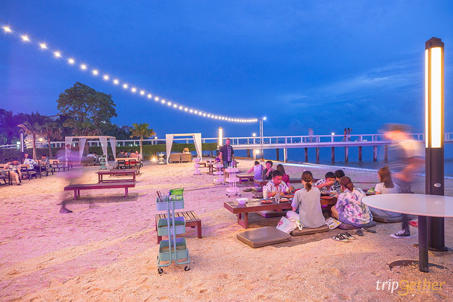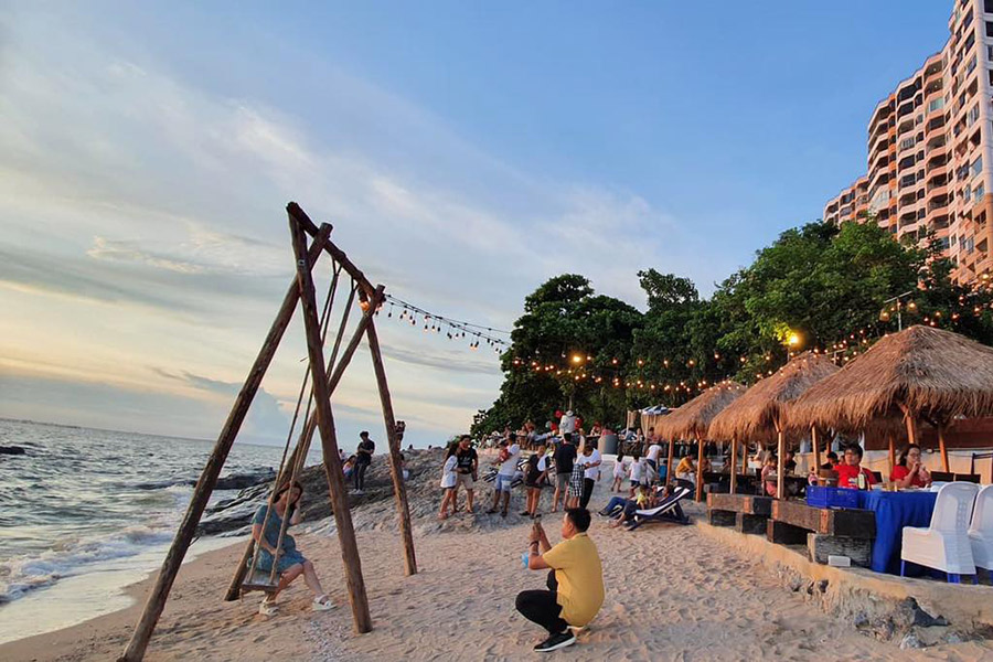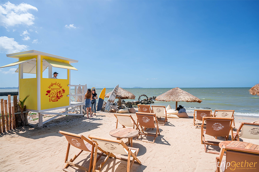 ไปบางแสนทั้งทีก็ต้องกินอาหารทะเล ริมทะเล กันที่ Seafood Club Bangsaen ร้านอาหารทะเลสดๆ สไตล์ Beach Club ริมชายหาดส่วนตัว ให้คุณได้กินซีฟู้ดสดๆ ไม่ว่าจะกุ้ง ปู ปลาหมึก ปลา กั้ง แซลมอน ซาชิมิ ไปพร้อมๆ กับนั่งรับลมทะเล ฟังเสียงคลื่นกระทบฝั่ง นอกจากส่วนของร้านอาหารแล้วที่นี่ยังมีโซนคาเฟ่ให้บริการเครื่องดื่มเย็นๆ ของหวานฉ่ำๆ กันด้วย ไม่เท่านั้นยังมีกิจกรรมทางน้ำอย่าง พายซับ พายคายัค ขี่เจ็ทสกี ล่องเรือส่วนตัว สำหรับสายแอดเวนเจอร์ ไม่เท่านั้นทางร้าน Seafood Club Bangsaen ยังเอาใจสายเช็คอินด้วยมุมถ่ายรูปเพียบ ไม่ว่าจะชิงช้ากลางทะเล กำแพงเซิร์ฟบอร์ด ที่นั่งบีนแบคริมทะเล เรือไม้ทาสีสดใสกลางชายหาด และมุมอื่นๆ อีกมากมาย กระซิบว่าทางร้านมีดนตรีสดให้ฟังกันเพลินๆ ในช่วงเวลาบ่ายไปจนถึงช่วงดึกของทุกวันด้วยนะ