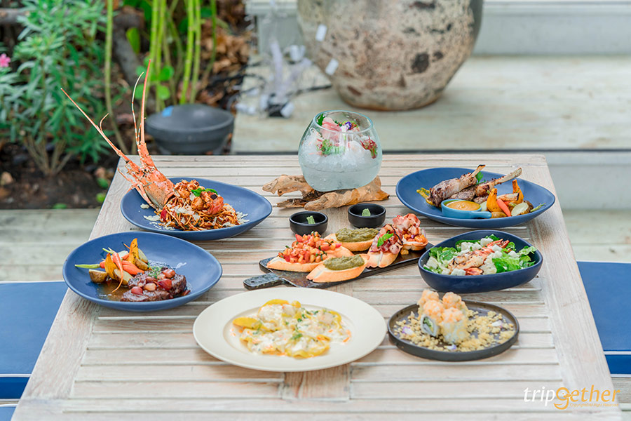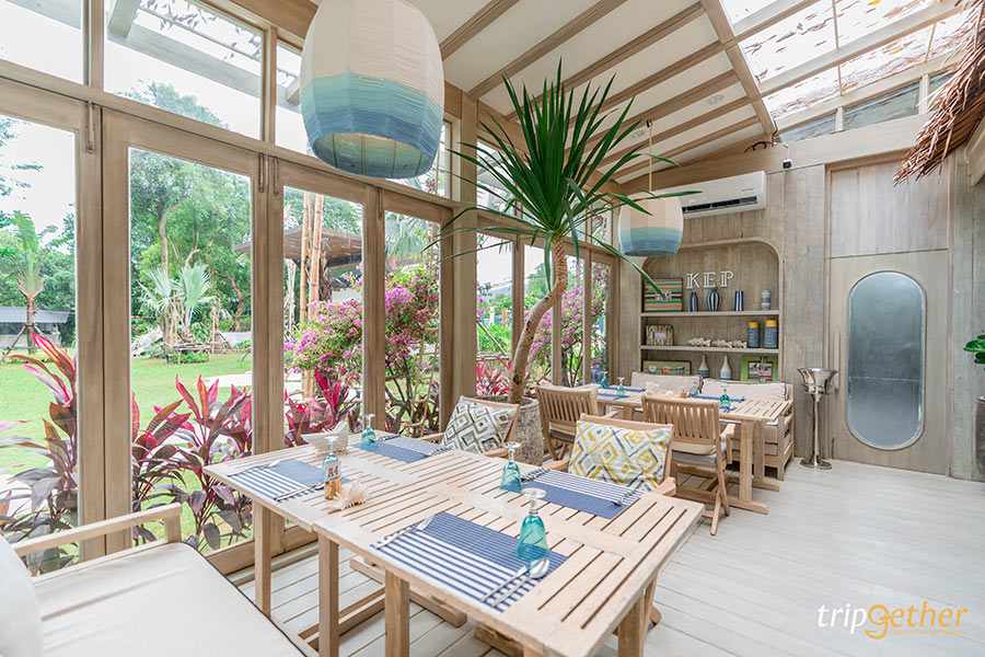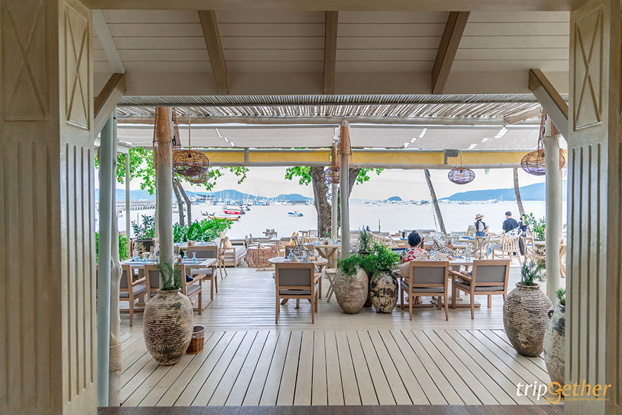 มาเริ่มด้วยร้านสวย บรรยากาศดีที่ KEP Phuket ตั้งอยู่ใกล้กับท่าเรืออ่าวฉลอง เพียงเดินเข้ามาในร้านก็สัมผัสได้ถึงความร่มรื่นและลมทะเลอ่อนๆ ส่วนการออกแบบมาในสไตล์บีชเฮ้าส์ เลือกใช้โทนสีฟ้าและสีขาวดูสบายตา กลมกลืนกับบรรยากาศของท้องทะเล สำหรับที่นั่งในร้านมีให้เลือกหลายที่เลย แต่ที่อยากแนะนำก็คือโซนเอาท์ดอร์ที่ติดกับทะเล ตรงนี้ลมเย็นสบายมาก แถมยังเห็นวิวทะเลแบบเต็มๆ ส่วนใครกลัวร้อนก็มีที่นั่งอินดอร์ห้องแอร์เย็นๆ ด้วยนะ ส่วนเมนูอาหารจะเน้นซีฟู้ด ที่คัดมาอย่างพิเศษและสดใหม่ ปรุงอย่างพิถีพิถัน ไม่ว่าจะเป็นเมนูเกี๊ยวเนื้อปู ล็อบสเตอร์ ทรีโอเนื้อปลา บอกเลยว่าอร่อยทุกเมนูจริงๆ ใครมองหาร้านอาหารภูเก็ตที่ครบทุกมู้ดต้องปักหมุดที่นี่แล้ว