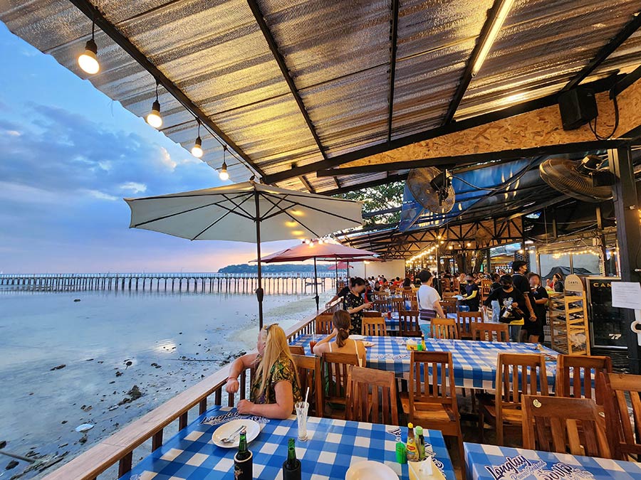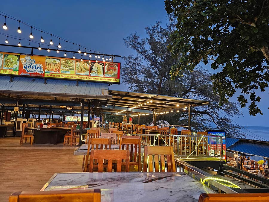 ล่องเล ราไวย์ ซีฟู๊ด ร้านอาหารซีฟู้ดบรรยากาศดีริมทะเล ตั้งอยู่ตรงตลาดขายอาหารสดซีฟู้ดทางเข้าหมู่บ้านไทย ตัวร้านพื้นที่กว้างขวาง ที่นั่งเยอะและมีทั้งหมดสองชั้น มาพร้อมวิวทะเลแบบเต็มๆ ยิ่งถ้ามาช่วงเย็นๆ บรรยากาศดีมาก ส่วนใครกลัวร้อนก็มีโซนห้องแอร์ด้วยนะ ส่วนเมนูอาหารก็เอาใจคนชอบอาหารทะเล กุ้ง หมึก ปู ปลา แบบเน้นๆ มาแล้วก็ต้องสั่งกุ้งผัดน้ำมะขาม มังกรเทอมิดอร์ กั้งคั่วพริกเกลือ กุ้งมังกรอบชีส และที่เด็ดก็คือน้ำจิ้มซีฟู้ดแซ่บๆ บอกเลยว่าเป็นร้านซีฟู้ดที่คนไทยและต่างชาติมาเยอะมาก รับประกันความอร่อยเลย