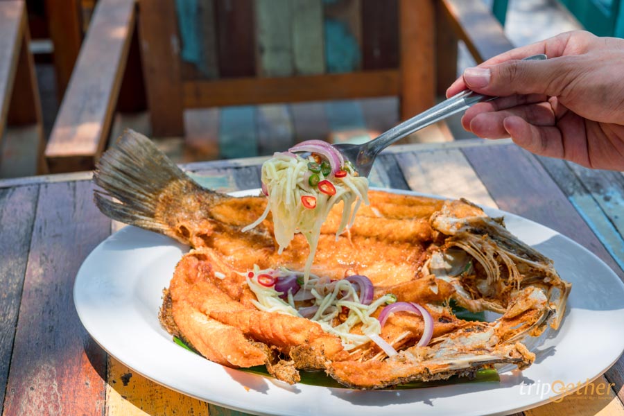 มาเริ่มกันที่ ร้านอาหารริมทะเลชลบุรี ที่ต้องมาลอง โก้ซีฟู้ด ตั้งอยู่โซนทะเลพัทยาเหนือ ติดสะพานยาวนาเกลือ มาพร้อมวิวทะเลสีครามแบบพาโนรามา ตัวร้านเป็นแบบเปิดโล่ง ทำให้นั่งดื่มด่ำซีฟู้ดไปก็รับลมสบายๆ จากไปด้วยได้เลย ในส่วนของเมนูอาหารของที่นี่วัตถุดิบสดใหม่ทุกวัน สำหรับเมนูไฮไลท์ก็จะมี ยำไข่ปลาเซียวรสจัดจ้าน ไข่ปลาก้อนโตกับน้ำยำคือดีงามสุดๆ หรือจะเป็น ปูม้านึ่ง ที่ทางร้านแกะมาให้แล้ว กินง่ายมากๆ แค่หยิบมาจิ้มซีฟู้ดก็อร่อยเด็ด นอกจากนี้ก็ยังมี หมึกผัดน้ำดำ กุ้งซอสมะขาม ทะเลผัดฉ่า ต้มยำทะเลน้ำใส และปลากะพงราดน้ำปลา ราคาเป็นมิตร แถมวิวดีอีกด้วย แอบกระซิบว่าถ้ามาเช็คอินช่วงเย็นฟีลดีต่อใจมาก