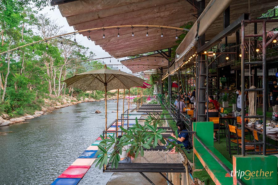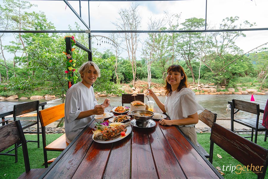 เปลี่ยนบรรยากาศพามานั่งกินข้าวริมน้ำตกที่ ครัวริมธาร ร้านอาหาร คาเฟ่นครนายก บรรยากาศดี เต็มไปด้วยต้นไม้มากมายที่มองไปทางไหนก็สบายตา ที่นี่มีให้เลือกทั้งห้องแอร์เย็นๆ และโซนริมน้ำที่บอกเลยว่าวิวดีทุกโต๊ะ ได้มองธรรมชาติวิวเขาและลำธารแบบใจฟูสุดๆ สำหรับเมนูอาหารที่นี่มีให้เลือกมากมาย เน้นเป็นเมนูอาหารไทยและอาหารอีสานเเซ่บๆ อย่างเช่น แกงคั่วหอยขม ผัดฉ่าปลาคัง ห่อหมกทะเลมะพร้าวอ่อน แถมมีซีฟู้ดสดๆ อาหารแต่ละจานเสิร์ฟมาหน้าตาน่ากินมาก นอกจากนี้ก็ยังมีในส่วนของคาเฟ่ที่เสิร์ฟขนมหวานและเครื่องดื่มแก้เผ็ด ดับร้อนอีกด้วยนะ