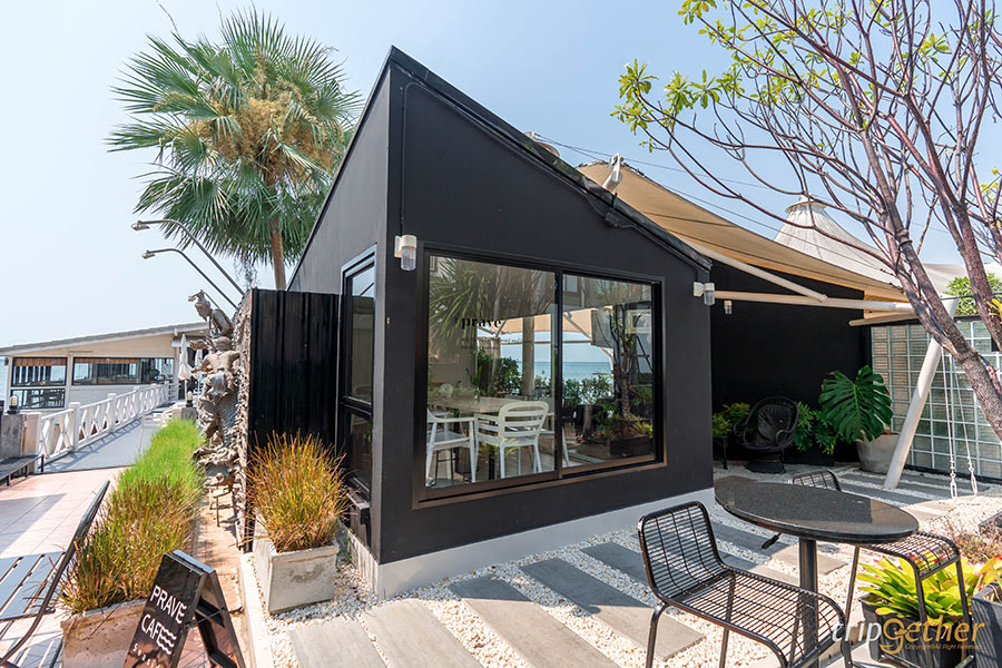 Prave Cafe คาเฟ่ศรีราชาในสไตล์เท่ๆ ให้ลุคคูลๆ คุมโทนด้วยสีขาวและสีดำ มาพร้อมกับวิวทะเลกว้างๆ สำหรับตัวร้านจะมีที่นั่งด้วยกัน 2 โซนก็คือ อินดอร์ห้องแอร์และเอาท์ดอร์ริมทะเล เริ่มที่อินดอร์จะเป็นห้องแอร์เย็นและมีกระจกบ้านใหญ่ มองเห็นวิวทิวทัศน์ได้แบบเต็มๆ รวมถึงมีมุมถ่ายรูปเก๋ๆ ให้ได้สายโซเชียลได้โพสอีกด้วย ในส่วนของเอาท์ดอร์จะอยู่ติดทะเล เหมาะกับการมานั่งรับลมชิลล์ๆ ในช่วงเย็น เมนูของที่นี่มีทั้งเบเกอรี่และเครื่องดื่ม coffee และ non-coffee แอบกระซิบว่าคอกาแฟต้องถูกใจมากๆ เพราะทางร้านเลือกเฉพาะกาแฟอาราบิก้าเกรดพรีเมียมมาชงให้เลย