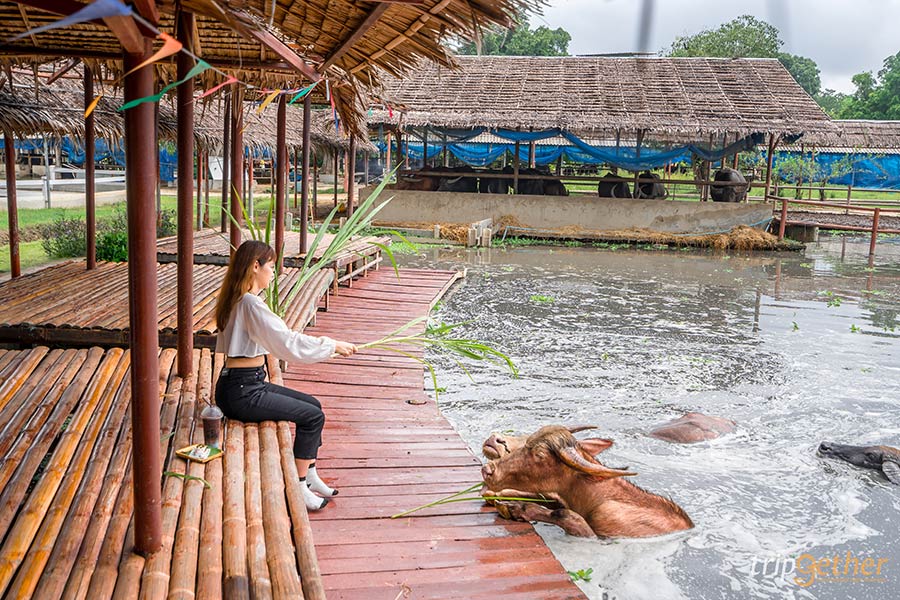 สายเที่ยวโลคอลต้องไม่พลาดการไปสัมผัสวิถีชีวิตท้องถิ่นเมืองสุพรรณบุรีแท้ๆ ที่ กินแฟ ดูฟาย (KinFaeDooFai) คาเฟ่สุดเก๋ ริมน้ำ ที่ตั้งอยู่ใน หมู่บ้านอนุรักษ์ควายไทย ที่นี่เป็นแหล่งเรียนรู้วิถีชีวิตภูมิปัญญาที่ได้จำลองบรรยากาศภาพวิถีชีวิตของคนไทยและการทำเกษตรกรรม โดยทางคาเฟ่มีเครื่องดื่มหลากหลายไว้คอยบริการระหว่างวัน นั่งพักผ่อนหย่อนใจพร้อมมองความน่ารักของเจ้าควายเล่นน้ำกันเพลิดเพลิน