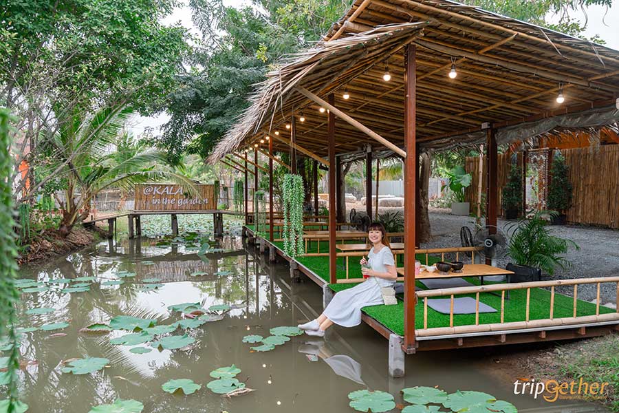 สายเส้นมารวมกันทางนี้ คาเฟ่เตี๋ยวกะลา ตีลังกาในสวน (KALA in the garden) ร้านก๋วยเตี๋ยวเจ้าดังแห่งเมืองสุพรรณ ที่ต้องบอกเลยว่าไม่ได้มีดีแค่ก๋วยเตี๋ยวนะ เพราะที่ร้านยังมีทั้งอาหารตามสั่ง ก๋วยเตี๋ยว เครื่องดื่ม ขนมหวานและไอศกรีม ตัวร้านอยู่ท่ามกลางบรรยากาศ รายล้อมไปด้วยสระบัว อากาศเย็นสบายมาก จะมาพักกินข้าวเติมพลังระหว่างทริปหรือแวะถ่ายรูปนั่งเล่นให้อาหารปลาก็ฟีลดีมาก