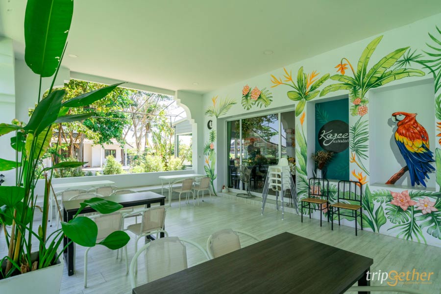 ไปต่อกันที่ ขจี คาเฟ่ แอนด์ โฮสเทล (Kajee café and Hostel) คาเฟ่สุพรรณ ร้านสวย มาพร้อมกับบรรยากาศสบายๆ ริมคลองสองพี่น้อง ตัวร้านตั้งอยู่ท่ามกลางธรรมชาติของหมู่แมกไม้ มีความร่มรื่น มองไปทางไหนก็รู้สึกผ่อนคลายจากสีเขียว ให้ฟีลเหมือนนั่งอยู่ในบ้านสวนส่วนตัวเลยล่ะ บอกเลยว่าฮีลใจสุดๆ สำหรับเมนูของทางร้านมีทั้งอาหารไทยฟิวชั่น ขนมหวาน เบเกอรี่โฮมเมด และเครื่องดื่มหลากหลายพร้อมเสิร์ฟ!