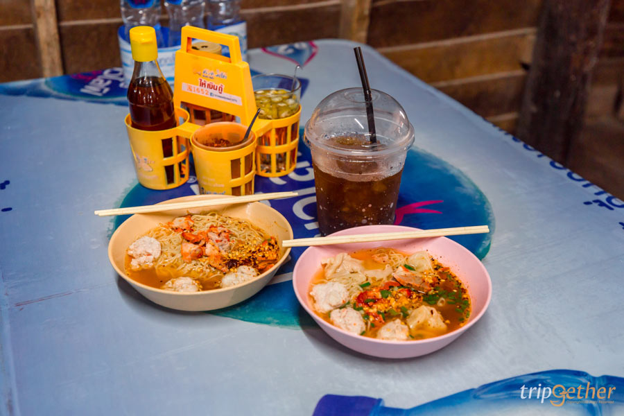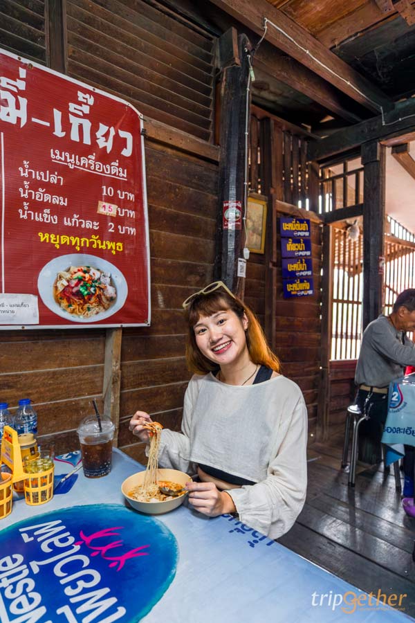 ปิดท้าย ร้านอาหาร คาเฟ่สุพรรณบุรี กันที่ เจ็กอ้าว บะหมี่-เกี๊ยว ร้านบะหมี่เกี๊ยวชื่อดังย่าน ตลาดสามชุก บรรยากาศภายในร้านจะตกแต่งแบบเรียบง่าย สบายๆ แต่รสชาติอร่อยจึ้ง! ทีเด็ดของที่นี่คือทางร้านใช้เส้นสดทำเอง สูตรแต้จิ๋วที่สืบทอดตำนานความอร่อยมามากกว่า 80 ปี ไม่ใส่สี ไม่ใส่สารกันบูดใช้แป้งสาลีเกรดพรีเมียมในการผลิต (เกรดเดียวกับที่ใช้ทำขนมปัง) ทำให้เส้นเเหนียวนุ่มอร่อยเสิร์ฟคู่มากับน้ำซุปร้อนๆ หอมหวานกลมกล่อม บอกเลยว่าชามเดียวไม่พอต้องสั่งเพิ่ม