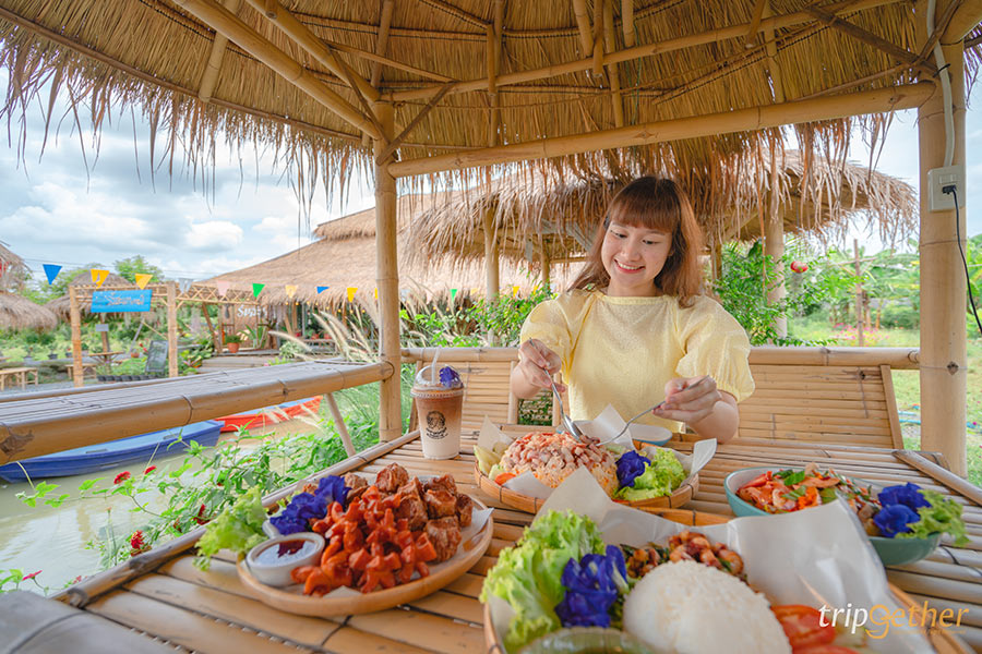 ร้านอาหารกึ่งคาเฟ่ไม่ใกล้กรุงเทพฯ ดูนา คาเฟ่ แอนด์ เรสเตอรองท์ ที่ขับรถเพียงไกลจากกรุงเทพฯ ก็จะพบกับร้านอาหารบรรยากาศดี แสนร่มรื่น ที่มีไฮไลท์อยู่ที่ทุ่งนานั่งเอง ใครมาช่วงที่ต้นข้าวกำลังขึ้นแบบเต็มๆ ก็จะได้เห็นความเขียวขจีของทุ่งนาพื้นกว้างๆ สวยงามสุดๆ ด้วยบรรยากาศร้านที่เป็นแบบเปิดโล่งทำให้ที่นี่เปิดสามารถพาสัตว์เลี้ยงเข้าได้ด้วย ส่วนของเมนูอาหารก็มีทั้งของคาว ของหวาน และเครื่องดื่มพร้อมเสิร์ฟ สำหรับของเมนูแนะนำที่มาแล้วต้องสั่งเลยก็คือ ปลาช่อนลุยสวน ห่อหมกทะเลมะพร้าวอ่อน กุ้งแช่น้ำปลา ส้มตำถาด ส้มตำหอยแครงกุ้งสด กาแฟน้ำมะพร้าว เค้กสตรอเบอร์รี่ครีมสด และเค้กส้ม ใครกำลังมองหาร้านที่ครบจบทั้งของคาวหวานแถมยังพาน้องๆ มานั่งเล่นได้แบบชิลล์ๆ แนะนำให้มาเช็คอินที่ดูนา คาเฟ่ แอนด์ เรสเตอรองท์