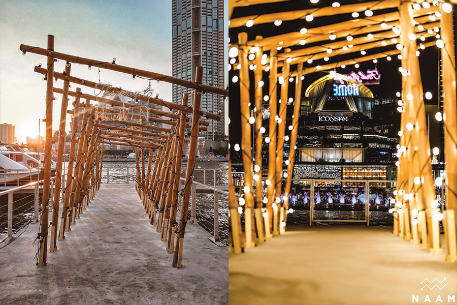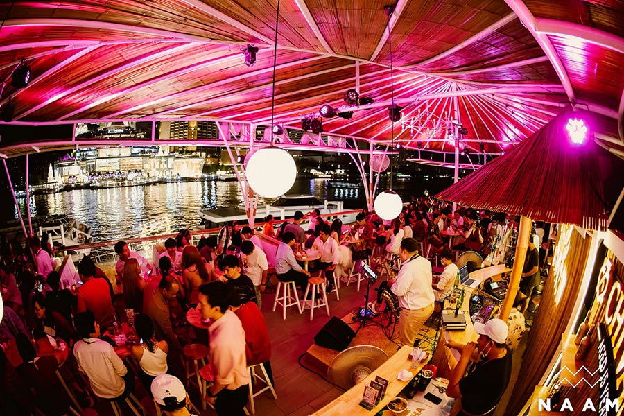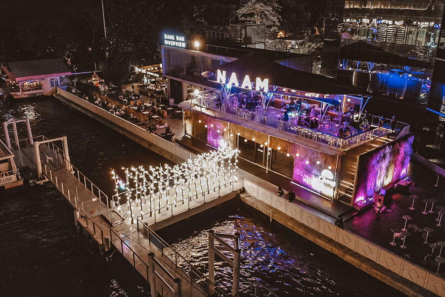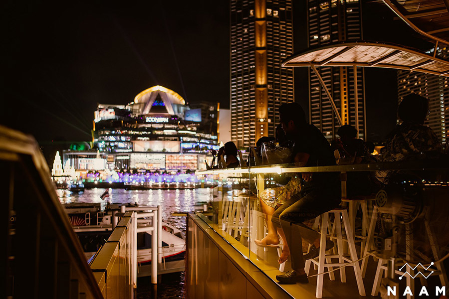 NAAM Bangkok ร้านอาหารและบาร์สไตล์ทรอปิคอลสุดชิค ด้วยบรรยากาศสุดดีงามกับวิวหลักล้านตั้งอยู่ริมแม่น้ำเจ้าพระยาตรงข้ามกับ ICON SIAM แบ่งโซนออกเป็น 2 โซนคือ OUTDOOR ตกแต่งในแนว Tropical Bali Bar เหมาะมานั่งฟังดนตรีสดกับดีเจสุดมันส์ในแนว Tech House และ Tropical House กันแบบเพลินๆ สำหรับโซน INDOOR เป็นโซนภายในห้องกระจกเคล้าเสียงดนตรียุค 90’s ดีต่อใจมาก ตกดึกก็สนุกกันต่อกับดีเจแนว Hiphop แดนซ์กันให้กระจายไปเลย ใครที่เลิกงานแล้วกำลังมองหาร้านอาหารฟีลดีก็ต้องแวะโดนสักที!