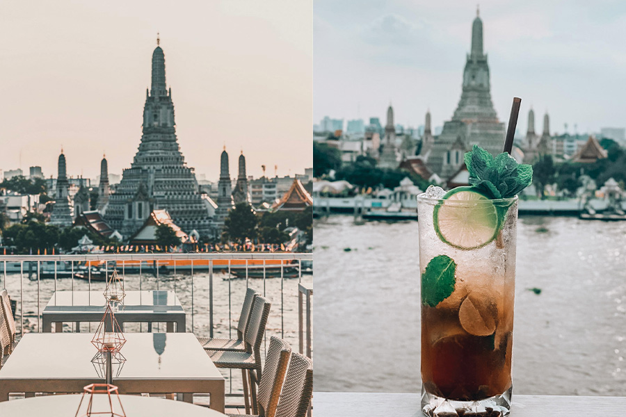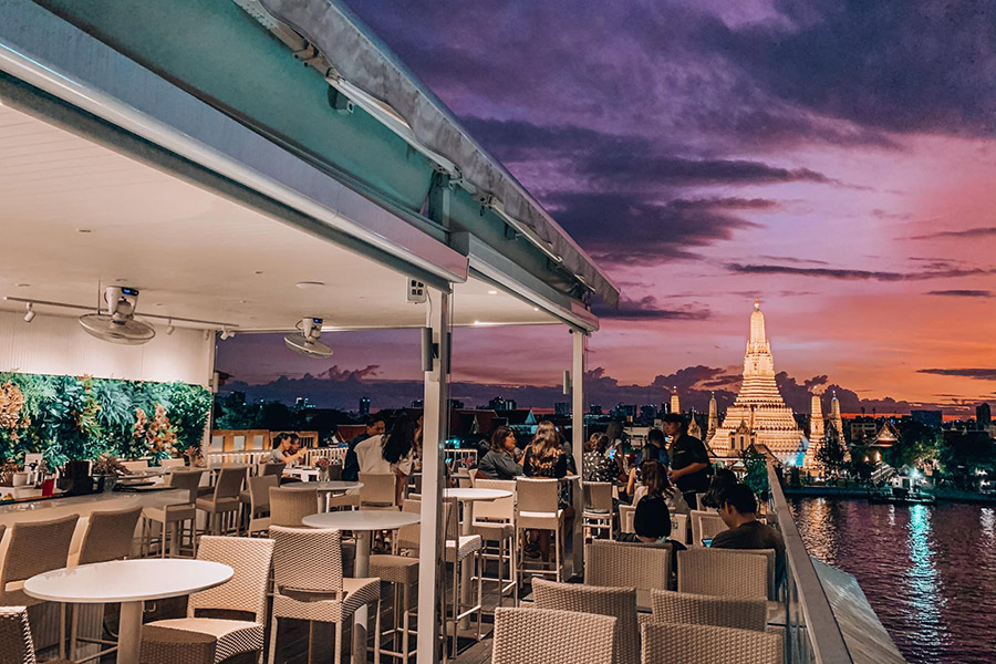 View ARUN – Rooftop Restaurant & Bar ร้านอาหารริมแม่น้ำเจ้าพระยาที่จะได้สัมผัสทั้งความสวยงามของวัดอรุณและความสวยงามยามเย็นริมแม่น้ำไปพร้อมกับเมนูอาหารหลากหลายอย่าง แกงส้มชชะอมกุ้ง, มิลเฟย, สตรอว์เบอร์รี่พานาคอตต้า, น้ำตกหมูนุ่ม, ข้าวซอยปูไข่ออนเซน, ใบเหลียงผัดไข่ และเมนูอาหารไทยอร่อยอีกมากมายที่สายกินจะพลาดไม่ได้เลยจริงๆ สำหรับใครที่อยากมานั่งชิลล์จิบเครื่องดื่มในบรรยากาศสบายๆ ก็ต้องแวะมาให้ได้เลย