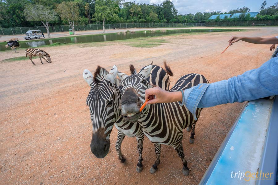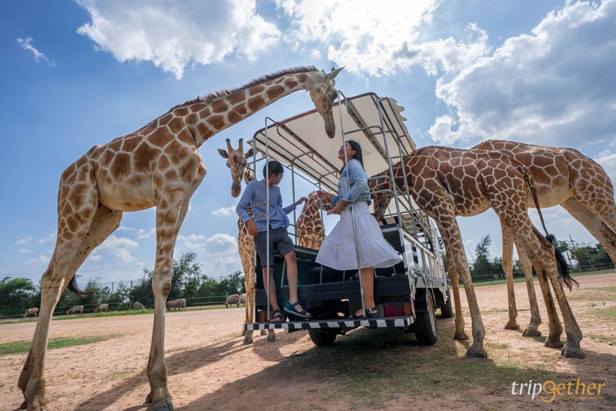 ไปกันต่อที่สวนสัตว์เปิดแห่งแรกของจังหวัดกาญจนบุรี อย่าง สวนสัตว์เปิด ซาฟารี ปาร์ค แอนด์ แคมป์ ที่นี่มีพื้นที่กว่า 500 ไร่ ภายในสวนสัตว์ได้เลี้ยงสัตว์นานาชนิดไว้อย่างอิสระ โดยจำลองสภาพแวดล้อมให้ใกล้เคียงกับการเป็นอยู่ของสัตว์แต่ละชนิด สามารถเข้าชม ถ่ายภาพ และให้อาหารสัตว์อย่างใกล้ชิดอย่างมาก ถึงขนาดที่ว่าสามารถกอดคอยีราฟถ่ายรูปหรือป้อนอาหารได้พร้อมถ่ายรูปแบบใกล้สุดๆ บอกเลยว่ามุมนี้ฮิตมาก สำหรับการเข้าชมที่นี่สามารถนำรถส่วนตัวเข้ามาเที่ยวชมสวนสัตว์ได้ หรือจะใช้บริการรถมินิบัสของทางสวนสัตว์ ซึ่งบริการฟรี!