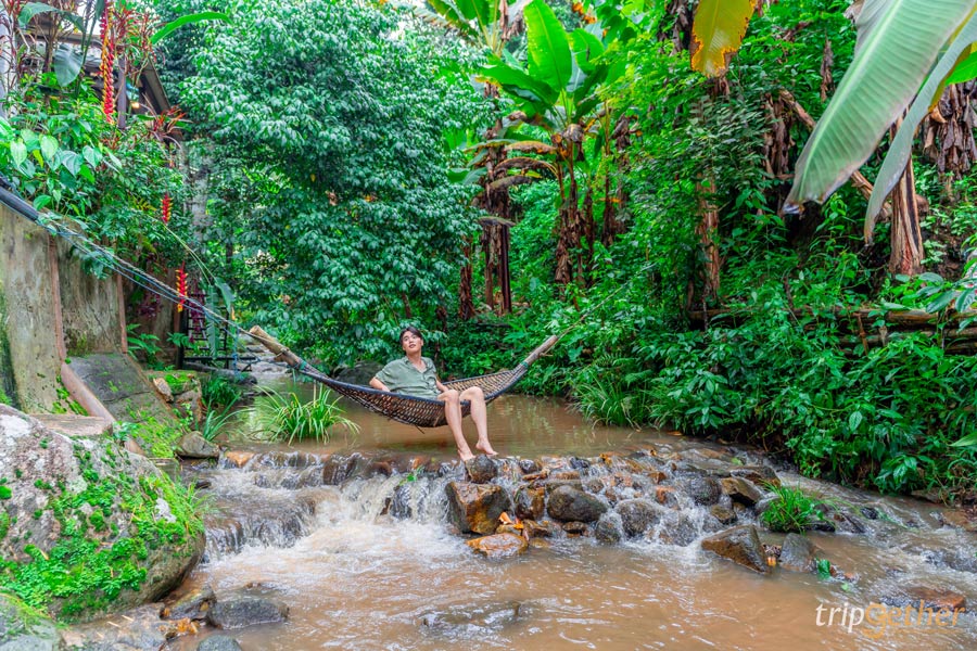 มาต่อกันกับ บ้านเคียงหินถวิลโฮมสเตย์ โฮมสเตย์แม่ลายติดริมลำธารสุดสดชื่น ที่มีห้องพักให้เลือกมากถึง 7 ห้องกันเลยทีเดียว โดยแบ่งห้องพักเป็น 2 แบบ คือบ้านไม้ไผ่ที่ภายในเน้นใช้วัสดุจากธรรมชาติอย่างไม้ไผ่เป็นหลักเพื่อสื่อถึงความเป็นธรรมชาติ สามารถเข้าพักได้ 2 คน และห้องพักที่ตกแต่งด้วยสไตล์ลอฟต์ที่มีพื้นที่กว้างขวางและเย็นสบาย ซึ่งสามารถรองรับผู้เข้าพักได้ตั้งแต่ 5 – 12 คน เหมาะกับการมากับกลุ่มเพื่อนเป็นที่สุด และถ้าใครอยากมาใช้เวลาพักผ่อนกับสัตว์เลี้ยงตัวโปรดก็สามารถเอาเข้าพักได้ นอกจากนี้ยังมีบริการอาหารที่หลากหลาย ไม่ว่าจะเป็นหมูกระทะ อาหารตามสั่ง รวมทั้งเซ็ตอาหารเหนือให้ได้นั่งกินเคล้ากับเสียงลำธาร หรือใครอยากเพิ่มความสดชื่นก็เพียงแค่เดินลงลำธารแล้วนอนเปลกลางน้ำสบายๆ ได้เลย วันหยุดนี้ใครมีแพลนมาเที่ยวแม่ลาย ขอแนะนำบ้านเคียงหินถวิลโฮมสเตย์เลย