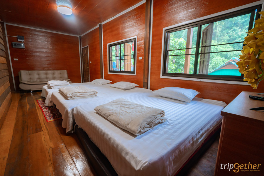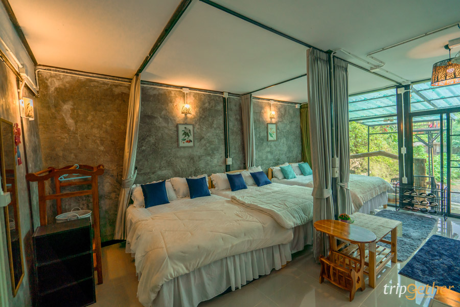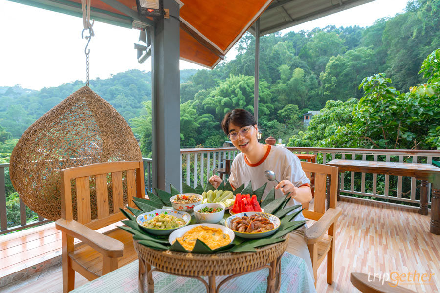 มาต่อกันกับโฮมสเตย์แม่ลายที่เหมาะกับการพักผ่อนแบบสโลว์ไลฟ์กันที่ ระเบียงน้ำโฮมสเตย์ ที่เป็นบ้านพักริมน้ำแบบ 2 ชั้น พร้อมด้วยห้องพัก 4 ห้อง ซึ่งสามารถรองรับผู้เข้าพักได้ตั้งแต่ 2 -4 คน ภายในห้องพักก็เรียกได้ว่าตอบโจทย์การพักผ่อนท่ามกลางธรรมชาติแบบสุดๆ นอกจากจะมีสิ่งอำนวยความสะดวกครบแล้ว ยังมีอ่างอาบน้ำ พร้อมกับวิวความกรีน และส่วนของระเบียงที่มีบาร์ให้ได้นั่งห้อยขา ฟังเสียงน้ำ มองวิวต้นไม้สีเขียวได้แบบเต็มๆ และใครที่มาพักที่ระเบียงน้ำโฮมสเตย์ ไม่ต้องกังวลเรื่องอาหารเลย เพราะที่นี่มีอาหารตามสั่งให้บริการ และถ้าใครมาเป็นกลุ่มใหญ่ก็สามารถสั่งหมูกระทะมานั่งกินฟินๆ ท่ามกลางอากาศเย็นสบายได้ นอกจากนี้ยังเดินไปสูดอากาศริมน้ำได้ นอกจากจะได้สัมผัสธรรมชาติเน้นๆ แล้ว ยังสามารถให้อาหารปลาธรรมชาติในลำธารใสได้อีกด้วย ระเบียงน้ำโฮมสเตย์เป็นอีกหนึ่งที่พักแม่ลายที่ทั้งสงบและเหมาะกับการหนีความวุ่นวายมาพักใจเป็นที่สุด