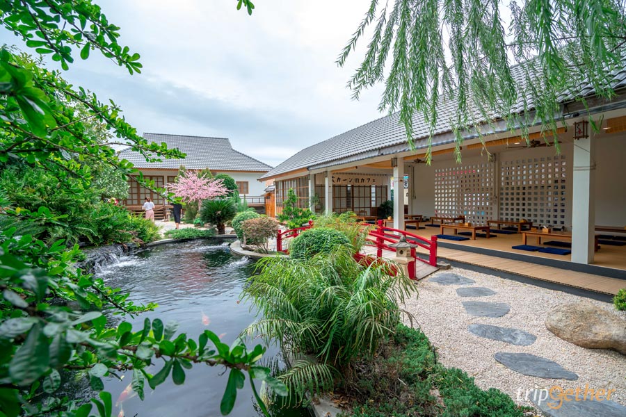 กาญจน์ มาชิ คาเฟ่ (Kan Machi Cafe) คาเฟ่สวยในสวนญี่ปุ่นตั้งอยู่ที่จังหวัดกาญจนบุรีนี่เอง มาถึงก็ต้องเห็นซุ้มประตูแดงหรือเสาโทริอิบริเวณทางเข้าร้านตั้งโดดเด่นสะดุดตาเป็นที่สุด เรียกได้ว่าเป็นจุดถ่ายรูปเช็คอินยอดฮิตเลยก็ว่าได้ เมื่อเข้ามาภายในร้านก็จะพบกับสวนแบบญี่ปุ่นที่จำลองมาไว้ที่กาญจน์ มาชิ คาเฟ่ มีสะพานไม้สีแดงเป็นอีกมุมนึงที่ต้องมาถ่ายรูปกัน ส่วนโซนนั่งมีให้เลือกทั้งแบบอินดอร์และเอาท์ดอร์ จัดวางด้วยโต๊ะสไตล์ญี่ปุ่นเข้ากับบรรยากาศโดยรอบฟีลดีสุดๆ นอกจากนี้ยังมีมุมถ่ายรูปแบบ Japaneses Street ให้ทุกคนได้มาเช็คอินกันอีกด้วย รวมไปถึงเมนูอาหารมีทั้งเซ็ตข้าวคั่ว ข้าวแซลมอนย่าง ยำแซลม่อน ขนมดังโงะ ขนมอันปังแมน กินคู่กับเครื่องดื่มอย่างเมนูซากุระเมล่อนที่เป็นคราฟท์โซดาบอกเลยว่าดีสุดๆ ใครที่อยากเที่ยวญี่ปุ่นแต่ยังบินไปไม่ได้ ที่กาญจน์ มาชิ คาเฟ่ จะช่วยให้ทุกคนหายคิดถึงญี่ปุ่นได้แน่นอน