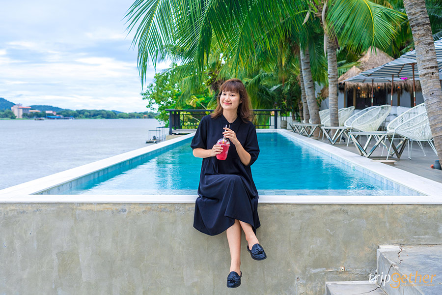 Z2 Cafe คาเฟ่กาญจนบุรี แต่บรรยากาศสุดชิลล์เหมือนนั่งอยู่ริมทะเล เพราะที่นี่ยกเอาชายหาดมาไว้ที่กาญจนบุรีแล้ว ไม่ว่าจะเป็นต้นมะพร้าวที่เรียงราย เก้าอี้ผ้าใบที่นั่งเล่นตามชายหาด กับบรรยากาศสบายๆ พร้อมกับสระว่ายน้ำริมแม่น้ำที่เป็นมุมเช็คอินสุดฮิตที่ใครมาก็ต้องมาแชะรูปกันที่มุมนี้ ใครที่หาร้านนั่งชิลล์ๆ ปักหมุดร้านนี้กันไว้ได้เลย นอกจากบรรยากาศดีๆ แล้ว เมนูเครื่องดื่มและเบเกอรี่ของที่นี่จะมีให้เลือกหลากหลาย ไม่ว่าจะเป็น Z2 Smoothie bowl เมนูสำหรับคนรักสุขภาพที่กินแล้วสดชื่นสุดๆ เครื่องดื่มก็มีทั้ง Lychee raspberry สมูทตี้รสชาติเปรี้ยวๆ หวานๆ ชื่นใจสุดๆ และใครที่อย่างเติมความสดชื่นให้กับร่างกายต้องสั่งเมนู Magic Ocean เลย กินคู่กับครัวซองต์แมคคาเดเมียก็อร่อยสุดๆ ใครที่มีแพลนจะไปเที่ยวกาญจนบุรีอย่าลืมปักหมุดร้าน Z2 Cafe แล้วแวะไปเช็คอินกัน