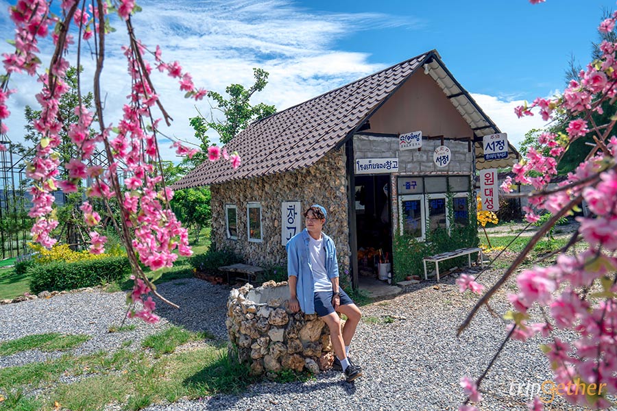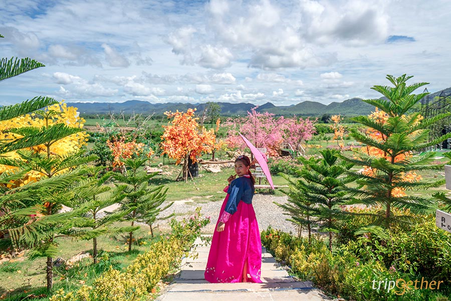 วอนแดซอง คาเฟ่สไตล์เกาหลีในเมืองกาญจนบุรี ไม่ต้องนั่งเครื่องบินก็เที่ยวฟินๆ ได้แล้ว เพราะวอนแดซองได้เนรมิตรให้บรรยากาศและการตกแต่งส่วนต่างๆ ได้อย่างเกาหลีเกาใจสุดๆ ทั้งโลเคชั่นที่สามารถมองเห็นภูเขาสลับซับซ้อนกันไปมา ตัดกับท้องฟ้าสีฟ้าสดใส และมีทุ่งดอกไม้กว้างนานาชนิด ที่หมุนเวียนกันออกดอกไปตามฤดูกาล รวมไปถึงการจัดสวนแบบเกาหลีทำให้บรรยากาศของวอนแดซองเหมือนกับอยู่บนเกาะเชจูกันเลย และถ้าจะเกาหลีให้ครบสูตรก็ต้องได้ใส่ชุดฮันบกถ่ายรูปกันสักหน่อย อยากบอกว่าที่วอนแดซองมีบริการเช่าชุดฮันบกด้วยนะ สั่งตัดและนำเข้ามาจากเกาหลีสามารถใส่ถ่ายรูปได้ทั้งวัน และไม่ต้องกังวลเรื่องความสะอาดเพราะทุกชุดที่นำไปใส่แล้วทางร้านจะนำไปซักทำความสะอาดไม่มีการนำมาใส่ซ้ำแน่นอน นอกจากนี้ตัวคาเฟ่ของที่นี่ยังมีอาหารเกาหลีให้บริการอีกด้วย วัตถุดิบก็นำเข้ามาจากเกาหลีเช่นกัน เมนูที่ใครมาแล้วต้องแนะนำให้สั่งเลยคือ ต๊อกบกกี ข้าวผัดกิมจิ อูด้งผัดทะเล ไก่ทอดวอนแดซอง ซุปกิมจิ และเกี๊ยวซ่า ส่วนเครื่องดื่มต้องไม่พลาดเลยนมกล้วยปั่นและนมเมล่อนปั่น สองเมนูนี้ก็นำเข้าจากเกาหลีด้วยขอบอกว่าหอมอร่อยแถมชื่นใจมากๆ ใครที่มาวอนแดซองต้องสั่งกันเลย