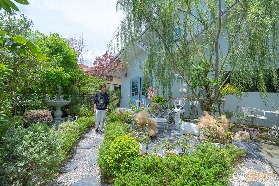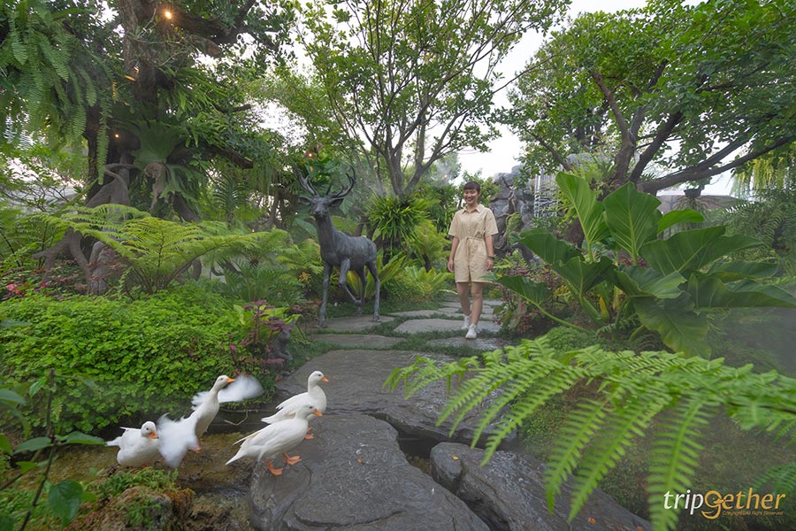 The Tall Tree Cafe and Bistro คาเฟ่มีนบุรีเปิดใหม่ท่ามกลางธรรมชาติที่จะพาทุกคนหลุดเข้าไปในโลกของนิยาย ภายในร้านแวดล้อมไปด้วยสวนสไตล์ทรอปิคอลและความร่มรื่นของต้นไม้นานาพันธุ์ อย่างมอสและเฟิร์น อีกทั้งยังมีเสียงน้ำไหลจากน้ำตกและไอหมอกจำลองกลางสวน สิ่งเหล่านี้ล้วนแต่ช่วยเสริมบรรยากาศของการพักผ่อน เพิ่มความมีชีวิตชีวาด้วยฝูงปลาคาร์ปแหวกว่ายกลางลำธารและเป็ดคอลดั๊กตัวน้อยๆ ที่เดินเล่นกลางสวน บอกเลยว่าถ่ายรูปคู่กับเหล่าสัตว์ตัวน้อยๆ เรียกยอดไลก์ได้รัวๆ หรือสายโซเชียลก็สามารถเดินชิลล์ๆ ถ่ายรูปตามมุมต่างๆ ในสวนก็ฟีลเจ้าหญิงมาก ส่วนตัวร้านคาเฟ่มีการออกแบบที่ดูเรียบง่ายพร้อมกับความหรูหรา โดยโทนสีที่ร้านใช้จะเน้นสีขาวหินอ่อนตัดด้วยสีดำ บวกกับสีจากธรรมชาติอย่างสีน้ำตาลจากไม้และสีเขียวของใบไม้ เมื่อรวมๆ กันแล้วทำให้ร้านดูสวยงามและกลมกลืนกับธรรมชาติ ส่วนเมนูทางร้านเน้นเสิร์ฟอาหารมังสวิรัติ ไม่มีเนื้อหมู เนื้อวัว และไม่มีผงชูรส เครื่องดื่มก็มีความหลากหลายและสวยงามเหมาะกับการถ่ายรูปสุดๆ ใครอยากสัมผัสความชิลล์แบบนี้สามารถแวะมาได้ที่ The Tall Tree Cafe and Bistro