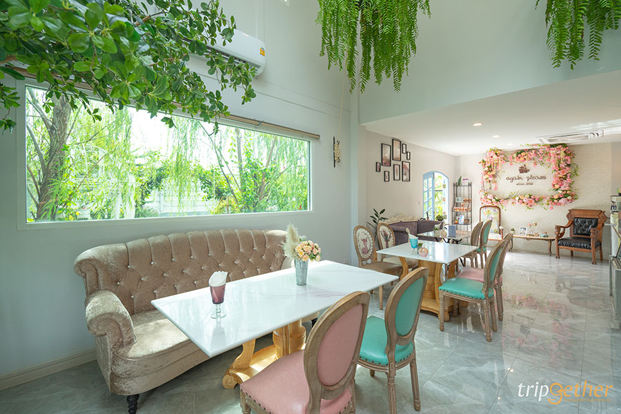 Again Please Cafe คาเฟ่หนองจอกที่มาในรูปแบบบ้านหลังเล็กในสวนสวยสไตล์อังกฤษ ไฮไลท์พิเศษของร้านนี้คือเมนูอาหารเป็นแบบโฮมเมดสูตรของคุณแม่เจ้าของร้าน บอกเลยว่าได้ฟีลเหมือนกินข้าวที่บ้านสุดๆ ส่วนเมนูขนมก็เป็นแบบโฮมเมดเช่นกัน จะเสิร์ฟแตกต่างกันไปในแต่ละวันบรรยากาศร้านอบอุ่นเป็นกันเอง มีโซนที่นั่งทั้งภายในบ้าน ที่ตกแต่งแนววินเทจอังกฤษ ให้ฟีลโคซี่นิดๆ ถ่ายรูปออกมาแล้วสวยสุด หรือใครอยากนั่งในสวนก็สามารถนั่งได้ มีที่นั่งบาร์ไม้ในสวนให้นั่งชิลล์เล่นๆ ส่วนมุมถ่ายรูปด้านนอกร้านก็สามารถเดินถ่ายรูปได้ทั่วทั้งสวน นอกจากนี้ที่ร้านยังมีห้องประชุมเล็กที่สามารถจองจัดประชุมหรือปาร์ตี้ได้ด้วยนะ ใครชอบคาเฟ่สไตล์วินเทจสวยๆ ต้องมาที่ร้านนี้เลย